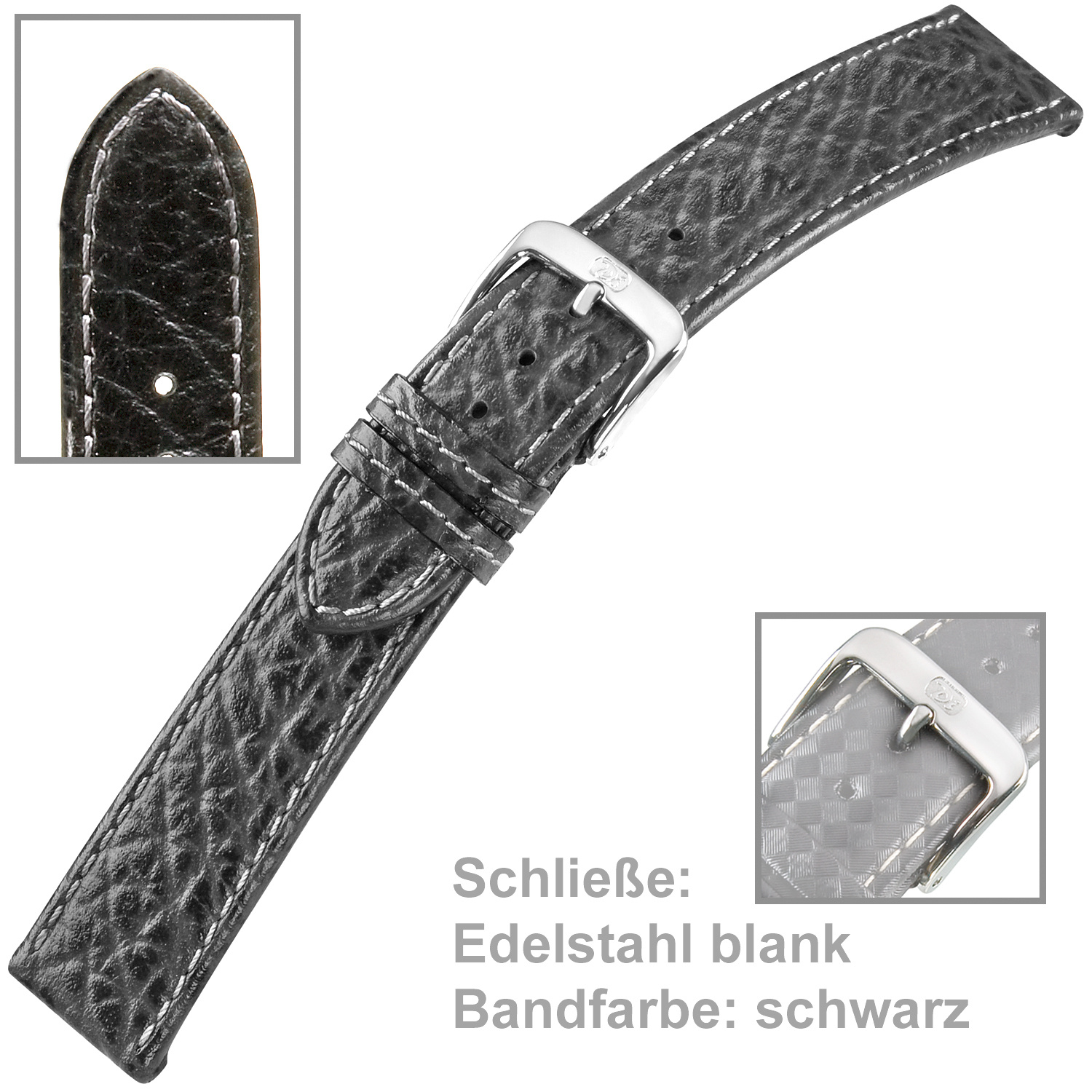 Uhrenarmband, schwarz, sportives Kalbleder, synthetisches Futtermaterial, Schließe Edelstahl glänzend, ca. 12,5 - 16,5 cm (ohne Uhr), Anstoß 18 mm