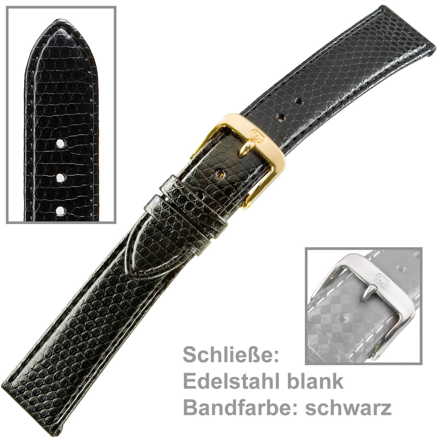 Uhrenarmband, schwarz, modische Eidechsprägung, Schließe Edelstahl glänzend, ca. 13,5 - 17 cm (ohne Uhr), Anstoß 20 mm