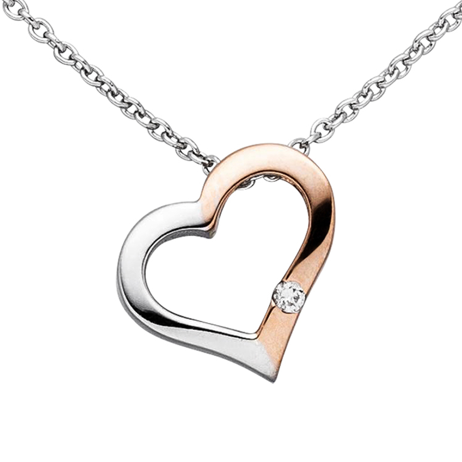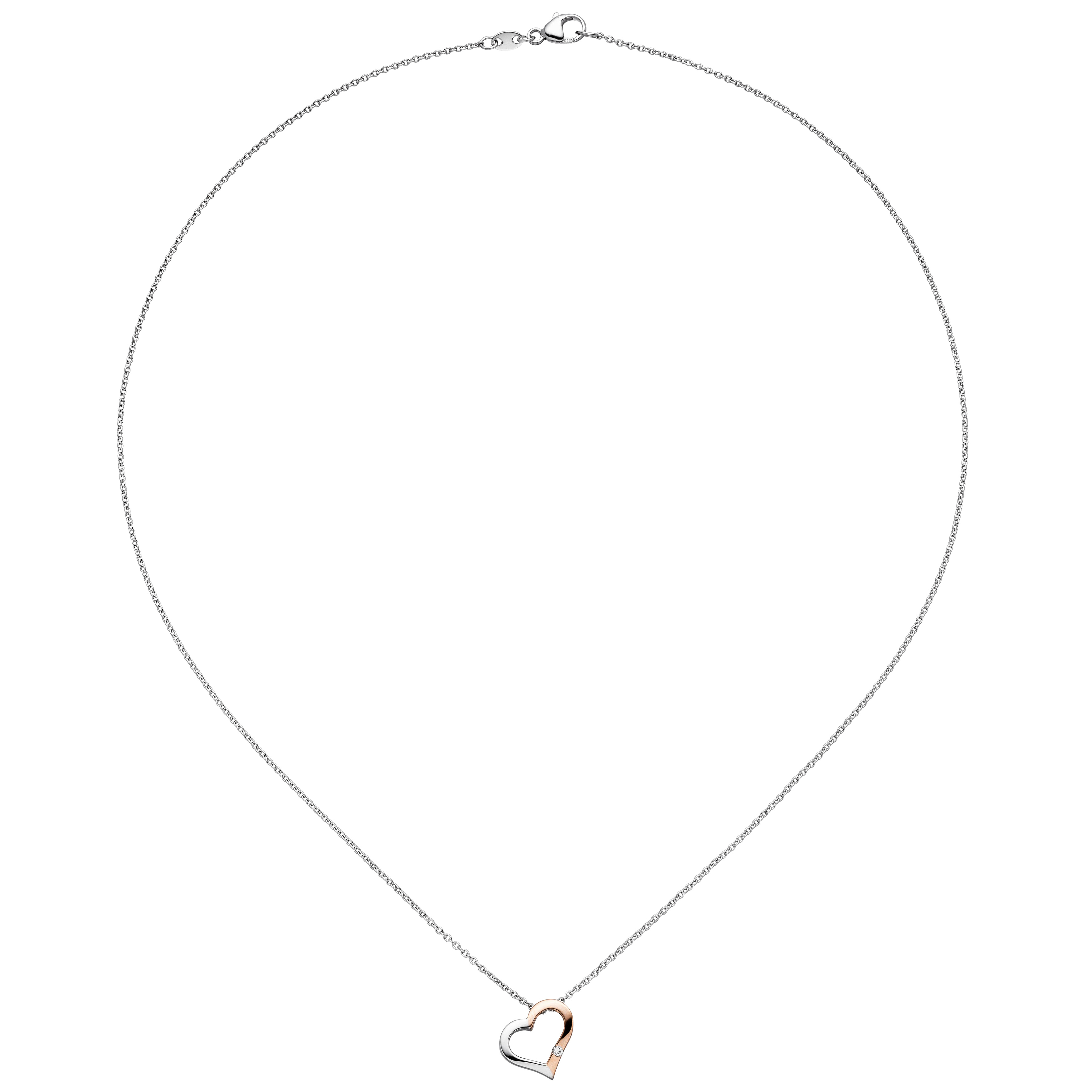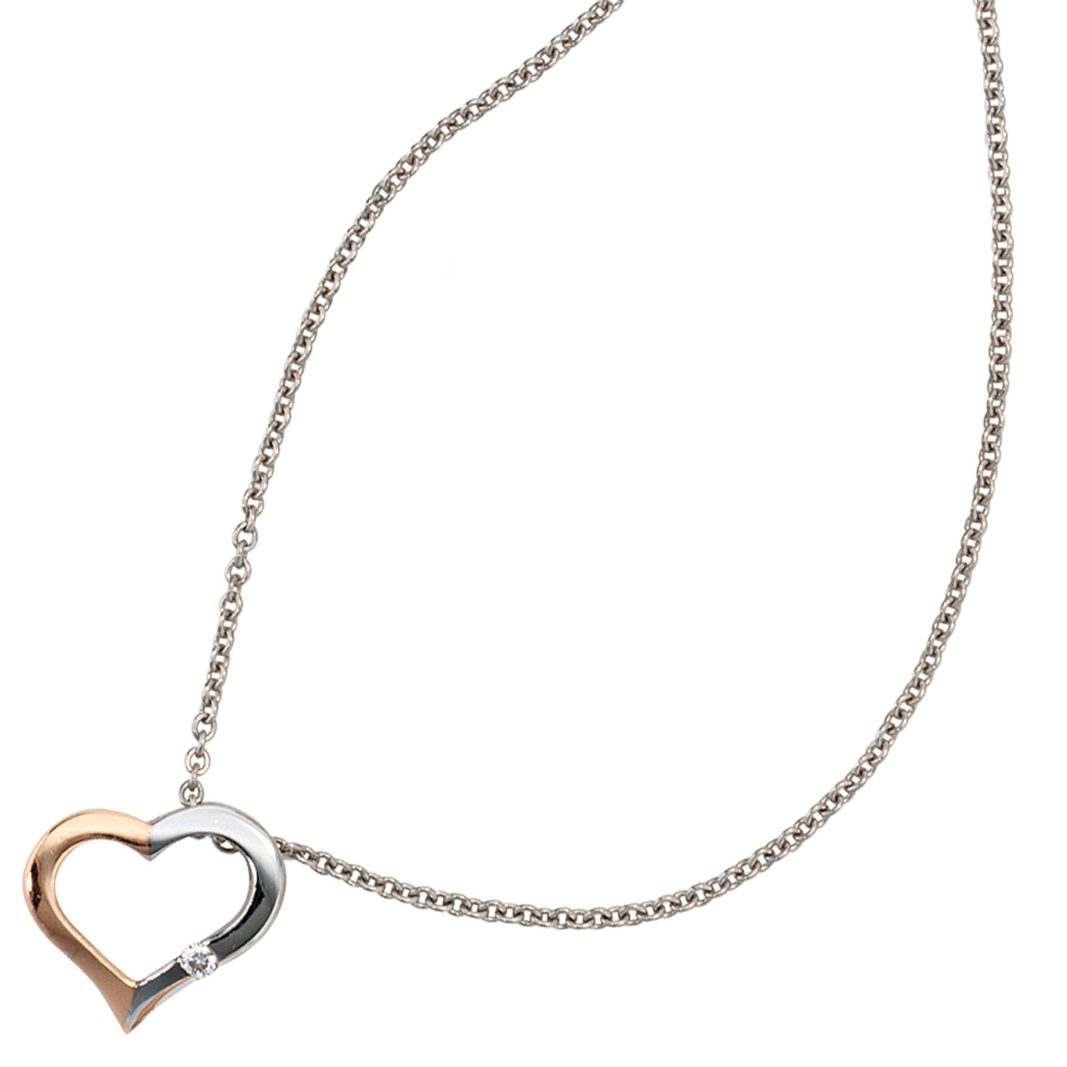 Collier Kette mit Anhänger Herz 585 Gold bicolor 1 Diamant Brillant 42 cm