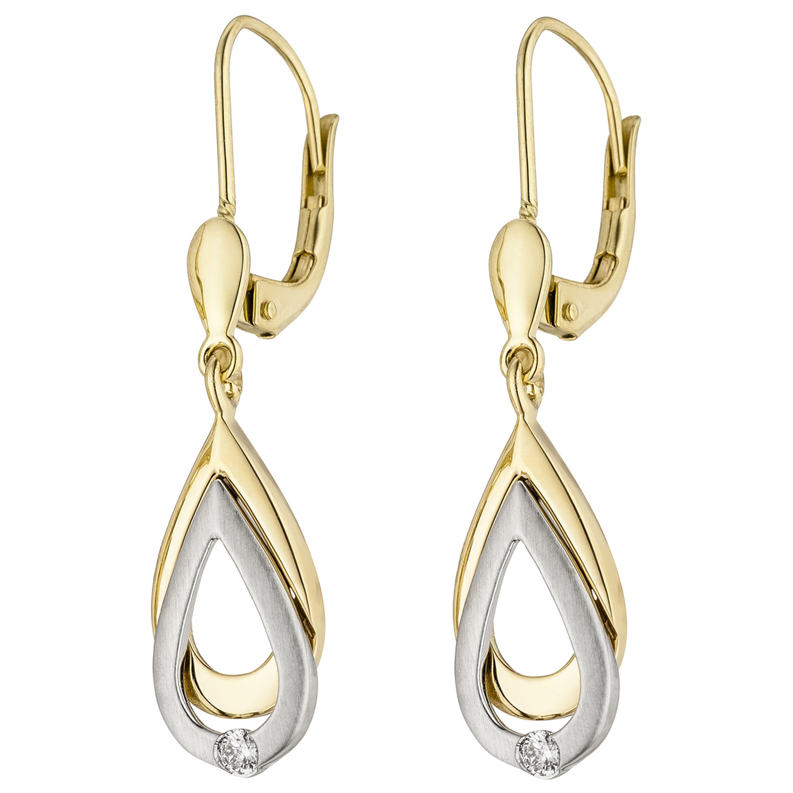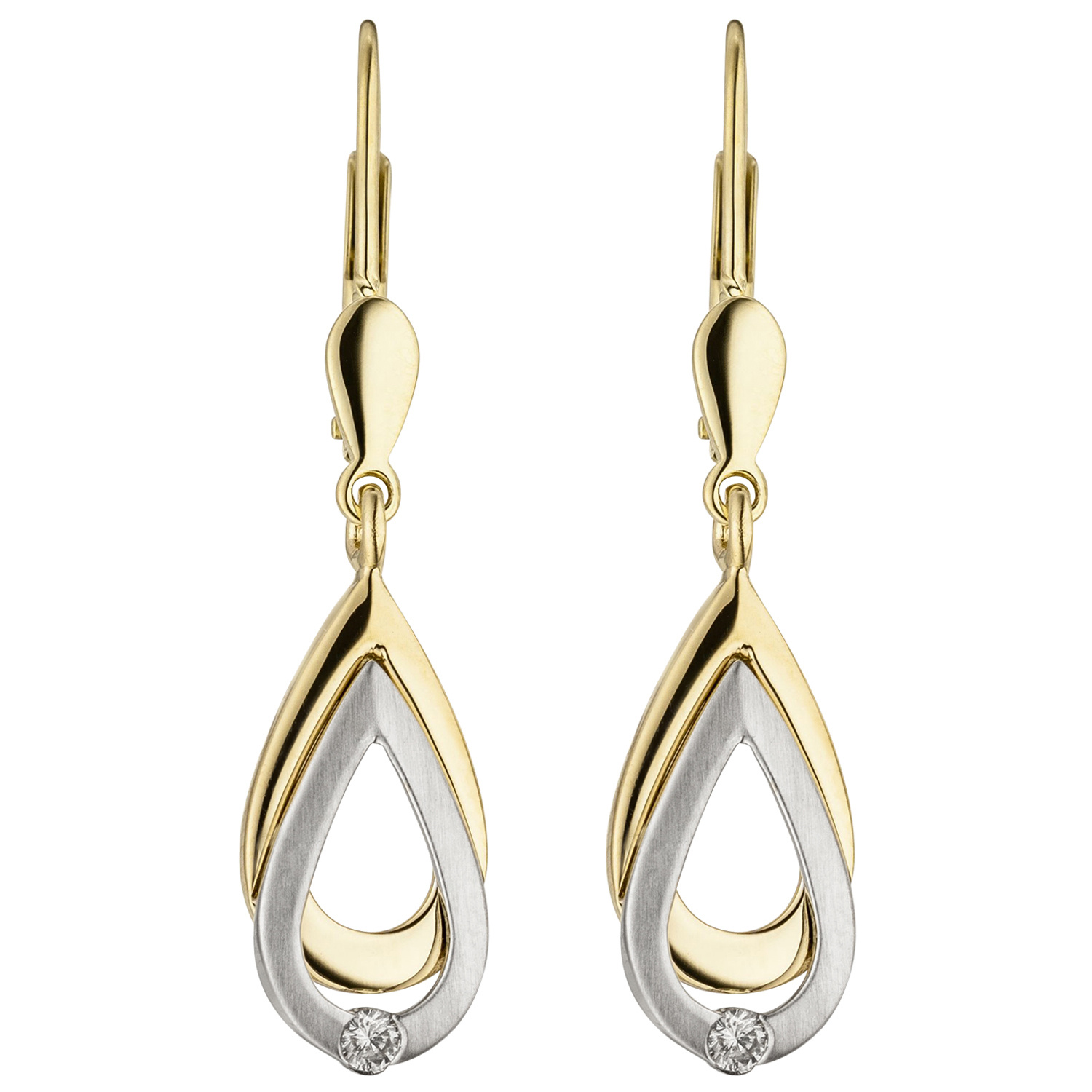Ohrhänger 585 Gold Gelbgold Weißgold bicolor 2 Diamanten Brillanten Ohrringe Ohrhänger 585 Gold Gelbgold Weißgold bicolor 2 Diamanten Brillanten Ohrringe