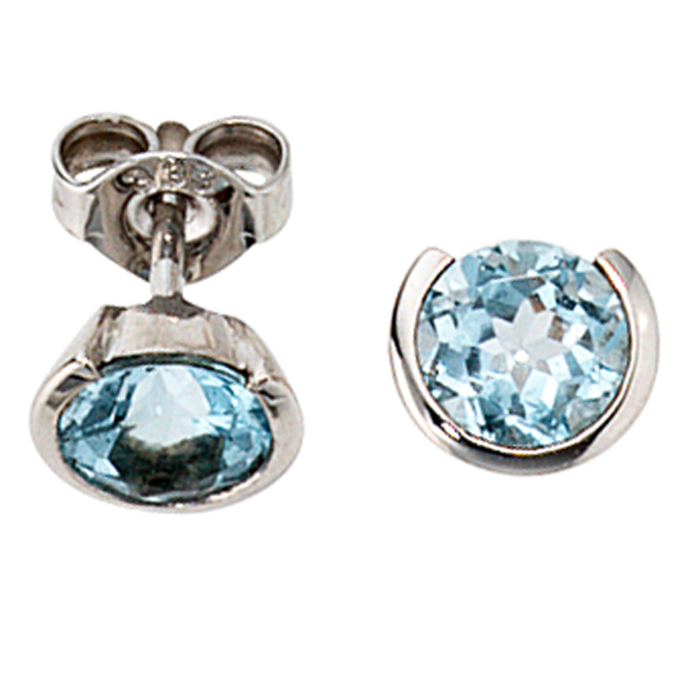 Ohrstecker rund 333 Gold Weißgold 2 Blautopase hellblau blau Ohrringe