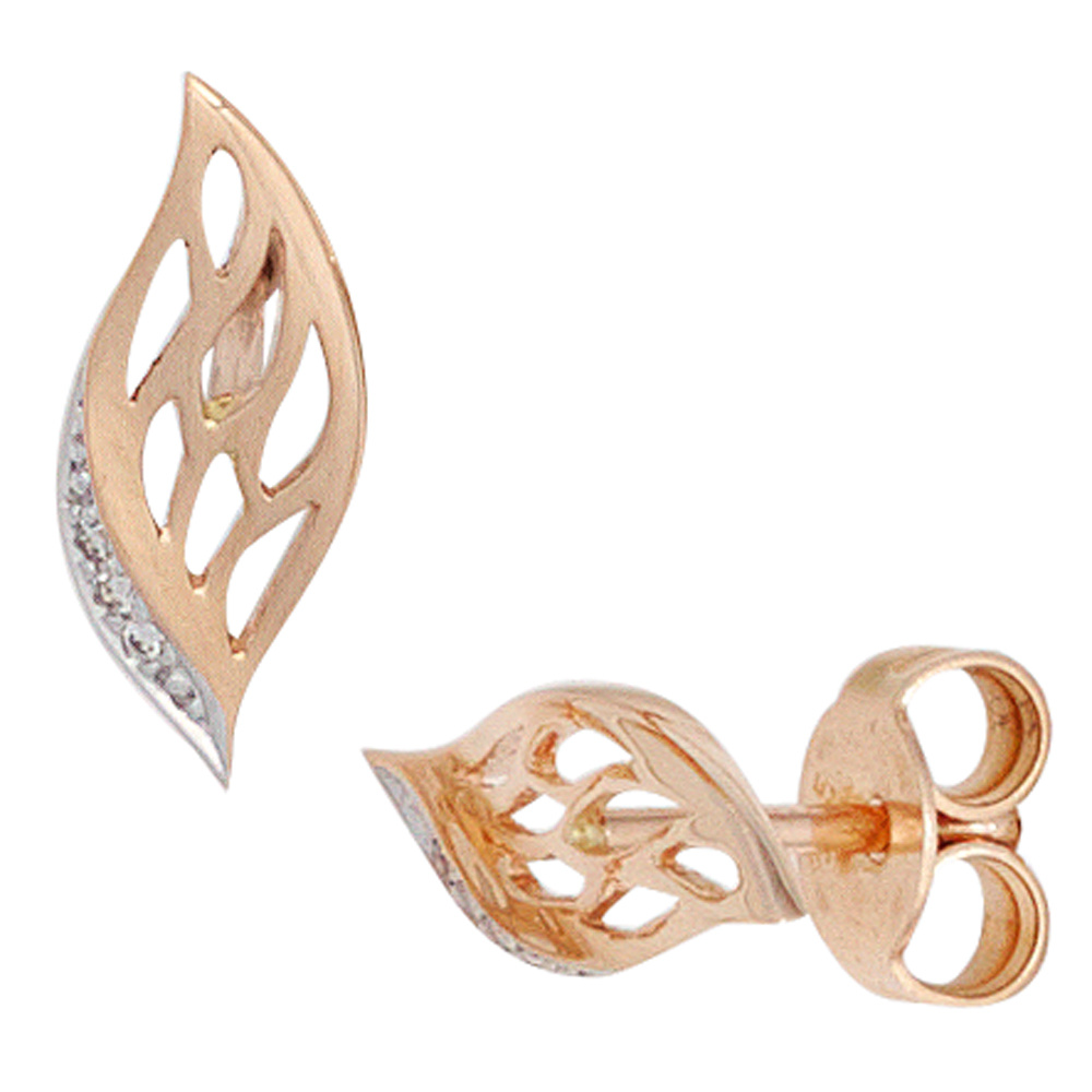 Ohrstecker 585 Gold Rotgold 6 Diamanten Brillanten Ohrringe