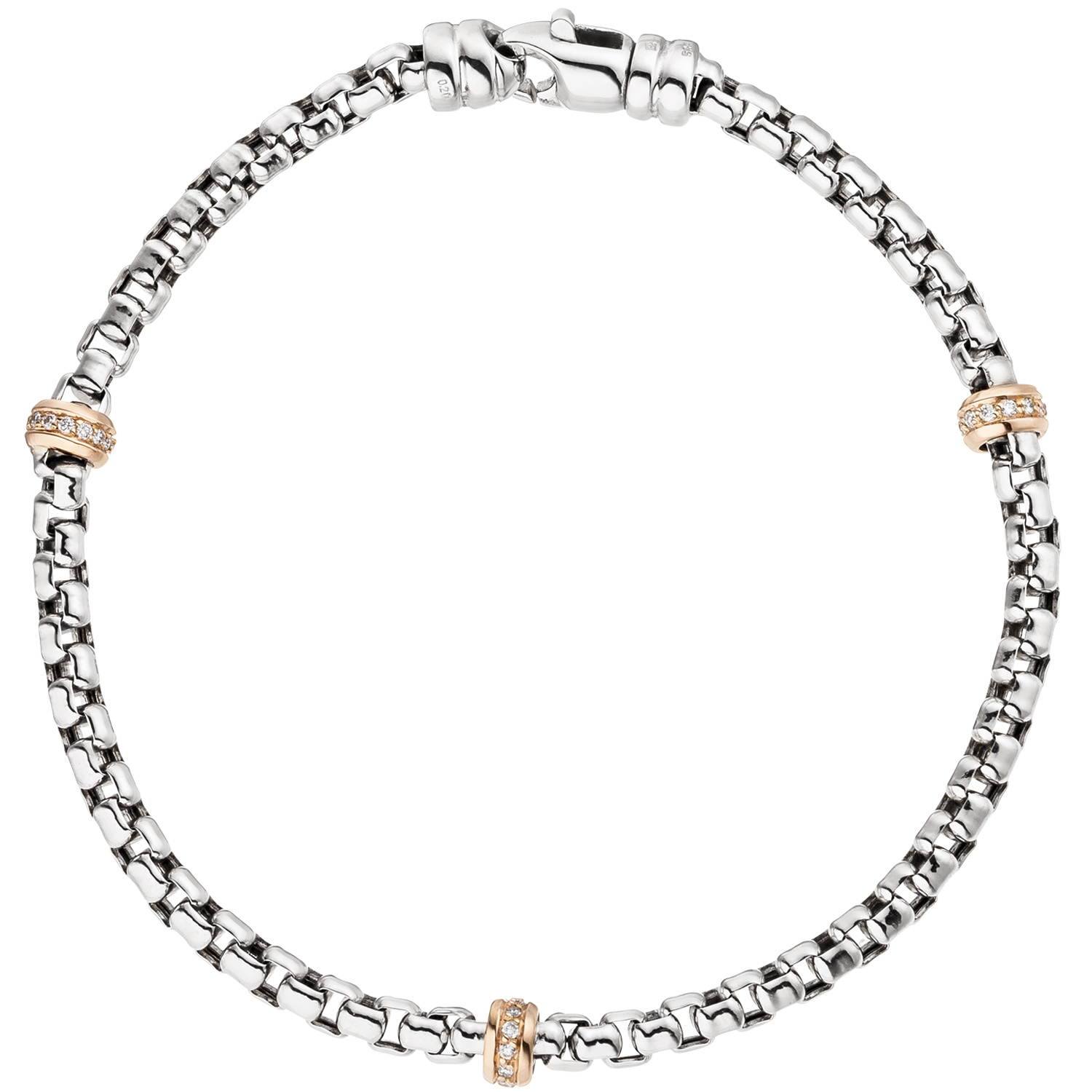 Armband 585 Gold Weißgold Rotgold bicolor 39 Diamanten Brillanten 19 cm