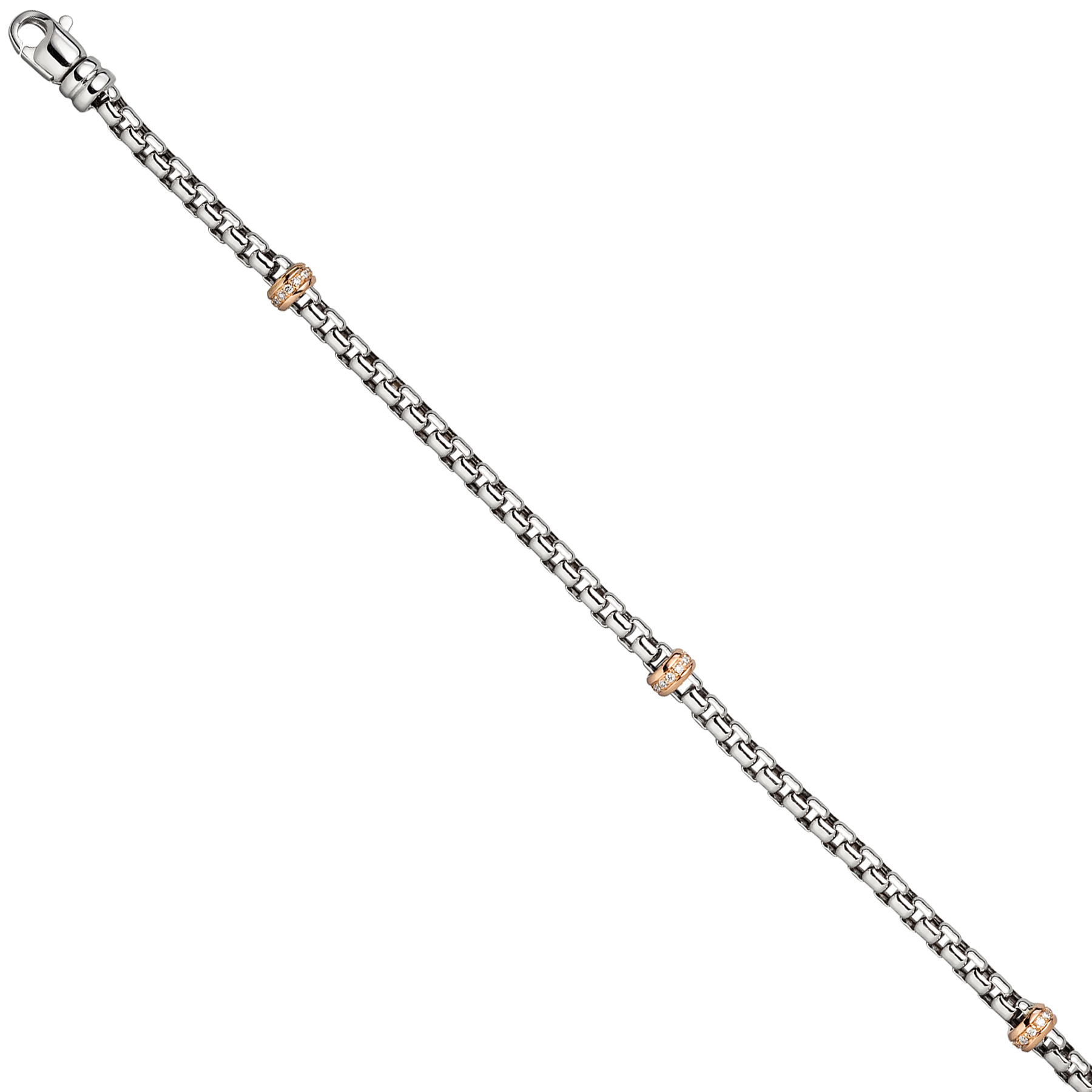 Rundvenezianer-Armband aus 14 Karat (585) Gold, Weißgold mit Rotgold kombiniert, mit 39 Diamant-Brillanten, 0,20 ct., W/SI wesselton (weiß), SI=(kleine, mit bloßem Auge nicht erkennbare natürliche Einschlüsse), Feinbearbeitung gut, mit Karabinerverschluss, Länge ca. 19 cm, Durchmesser ca. 5,5 mm, Stärke ca. 3,5 mm x 3,5 mm, Breite ca. 3 mm, Gewicht ca. 8,5 g * Bitte beachten Sie die Maße! Auf dem Foto kann der Artikel größer wirken *