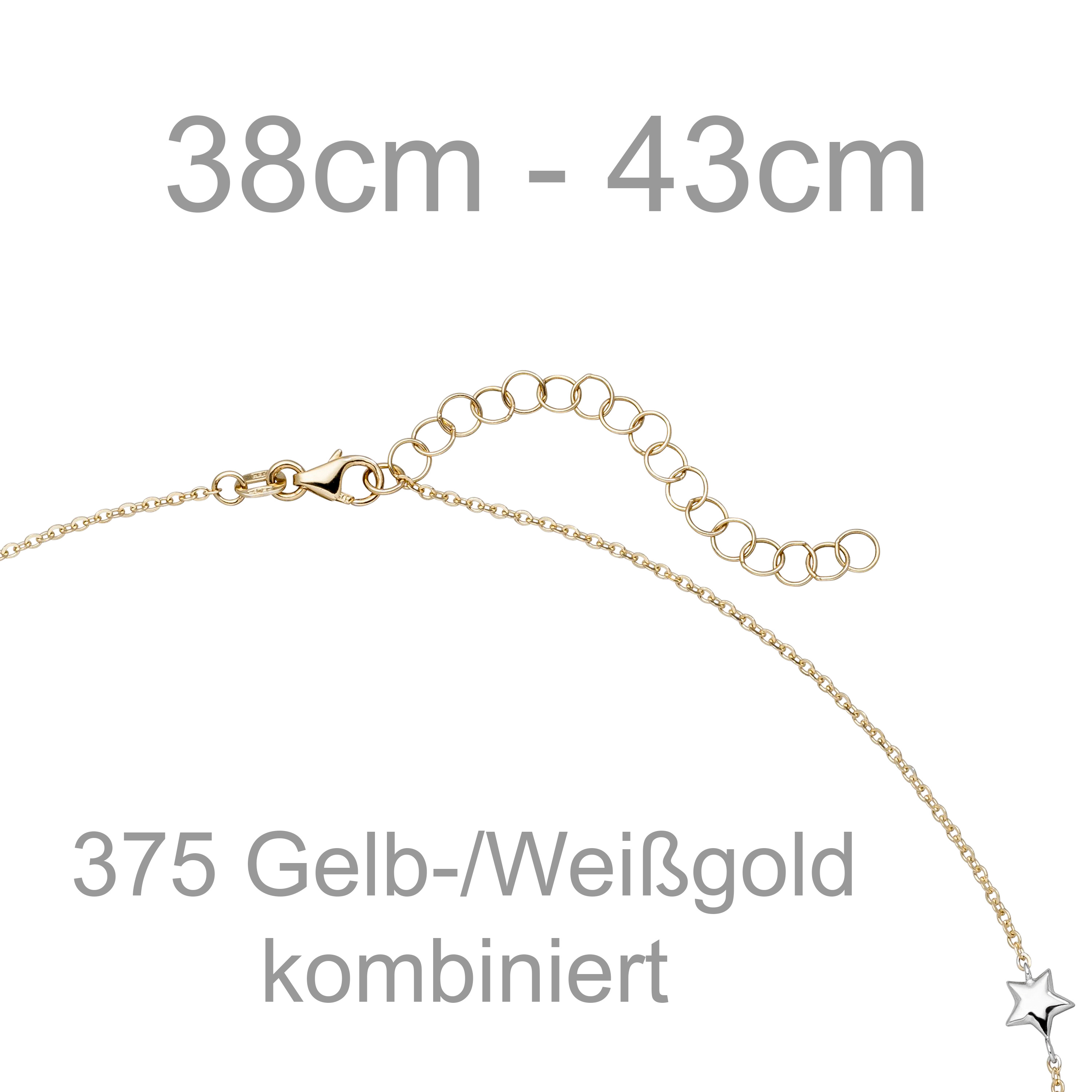Collier Halskette Stern 375 Gold Gelbgold Weißgold bicolor diamantiert 43 cm