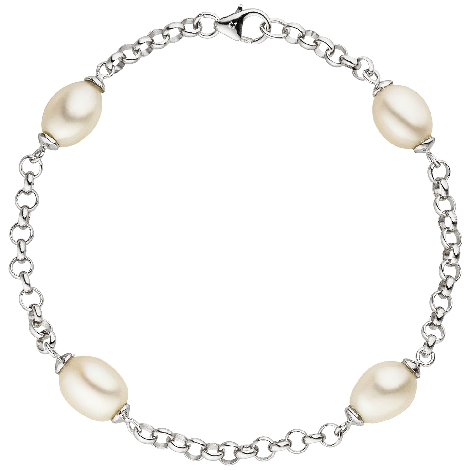 Armband aus 925 Sterlingsilber, rhodiniert, mit 4 Süßwasser-Zuchtperlen und Karabinerverschluss, Länge ca. 19 cm, Breite ca. 7,9 mm, Gewicht ca. 6,5 g * Der Artikel ist anlaufgeschützt (rhodiniert) * Bitte beachten Sie die Maße! Auf dem Foto kann der Artikel größer wirken *