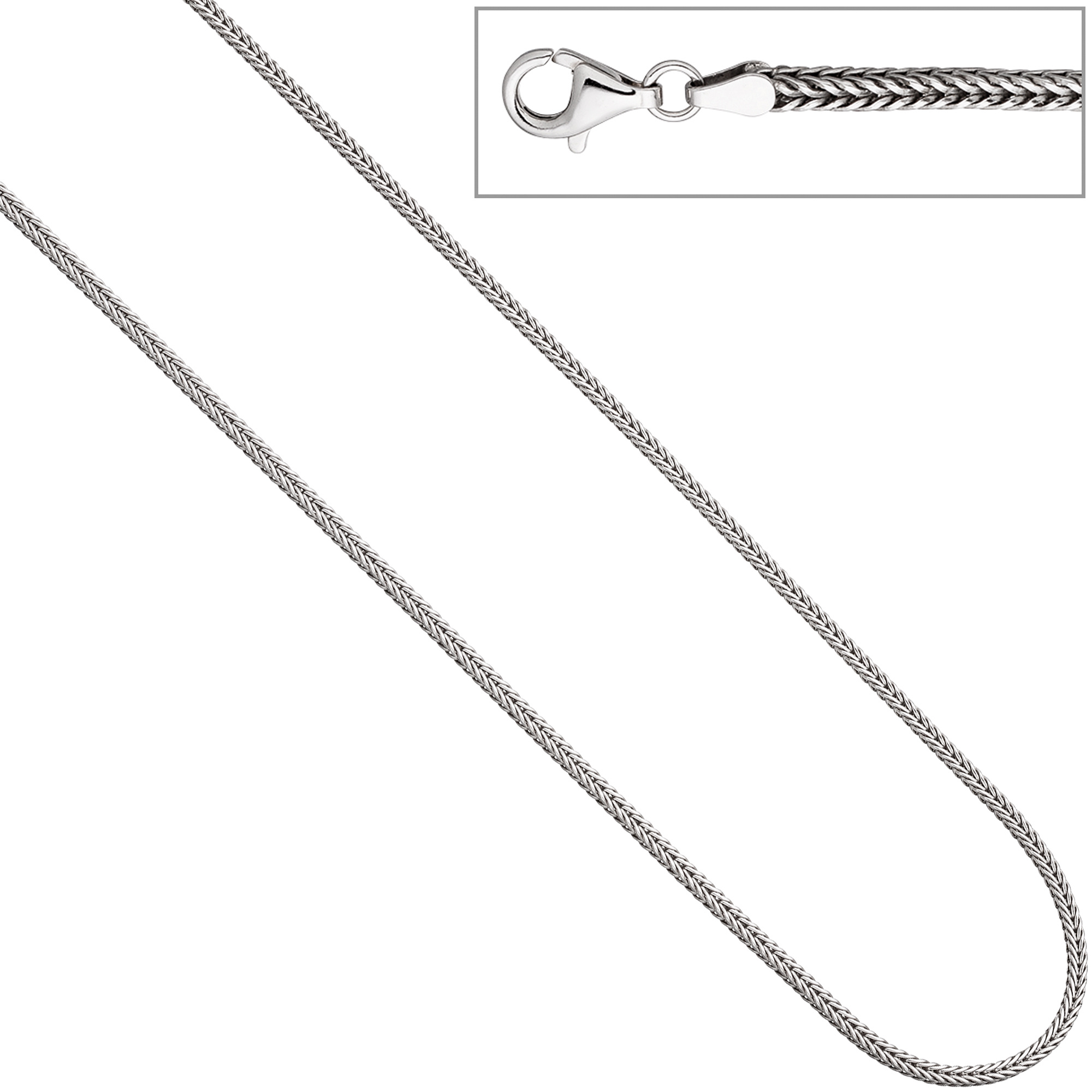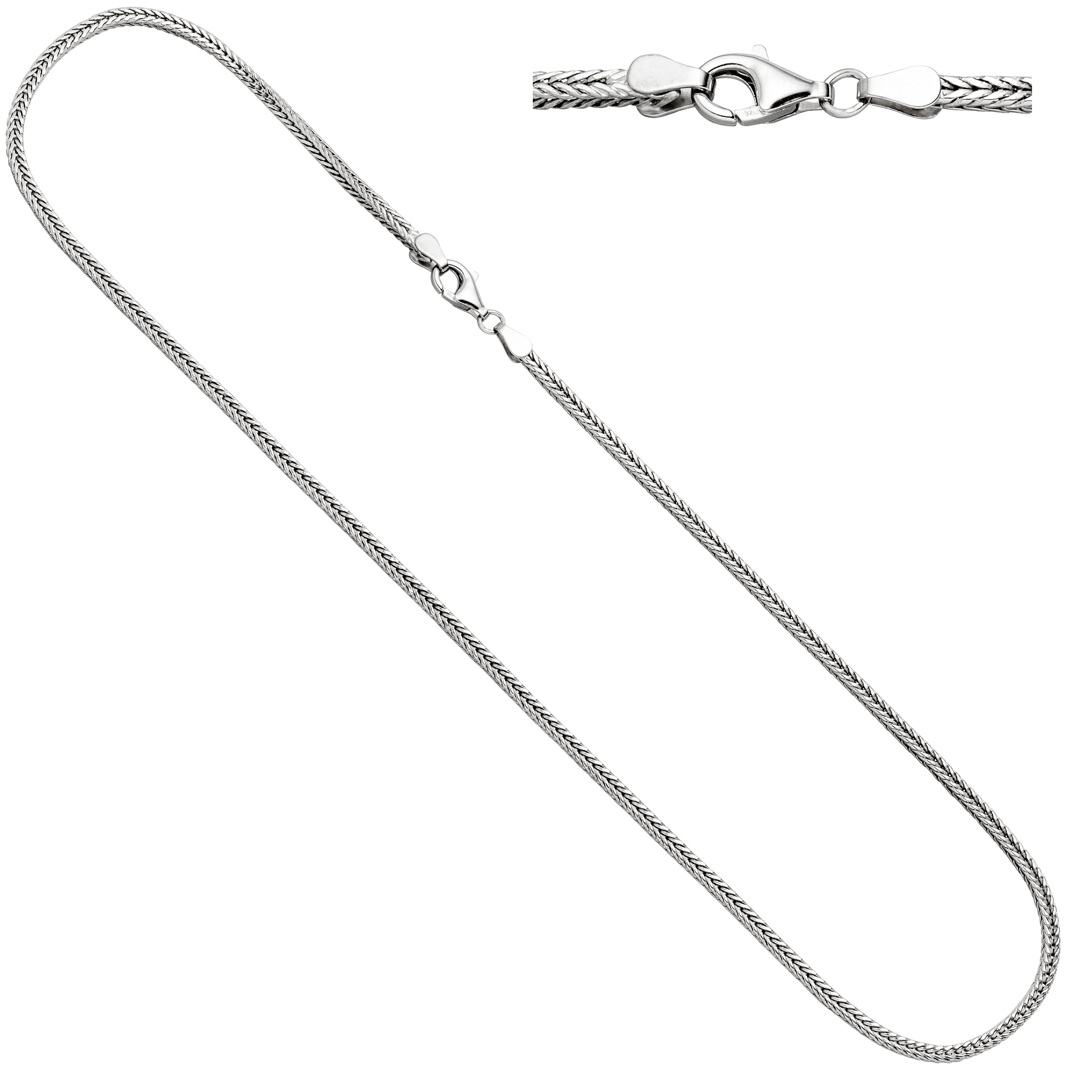 Fuchsschwanzkette aus 925 Sterlingsilber, rhodiniert, mit Karabinerverschluss, Länge ca. 45 cm, Kettenstärke ca. 2,5 mm x 2,5 mm, Gewicht ca. 12,5 g * Der Artikel ist anlaufgeschützt (rhodiniert) * Bitte beachten Sie die Maße! Auf dem Foto kann der Artikel größer wirken *