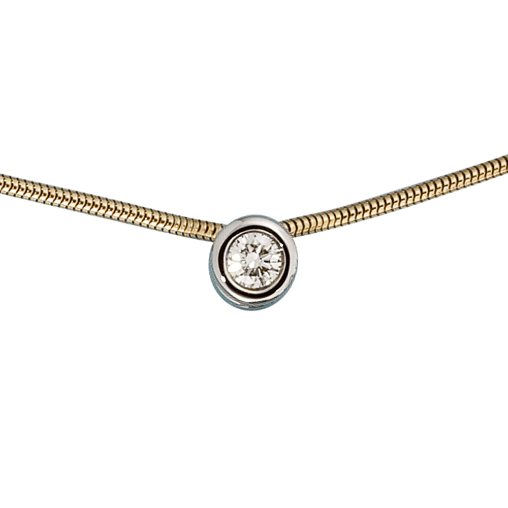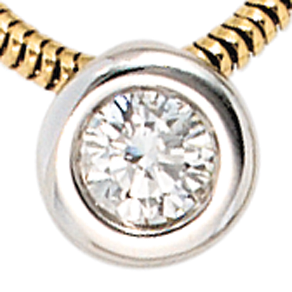 Collier Kette mit Anhänger 585 Gold bicolor 1 Diamant Brillant 42 cm Halskette