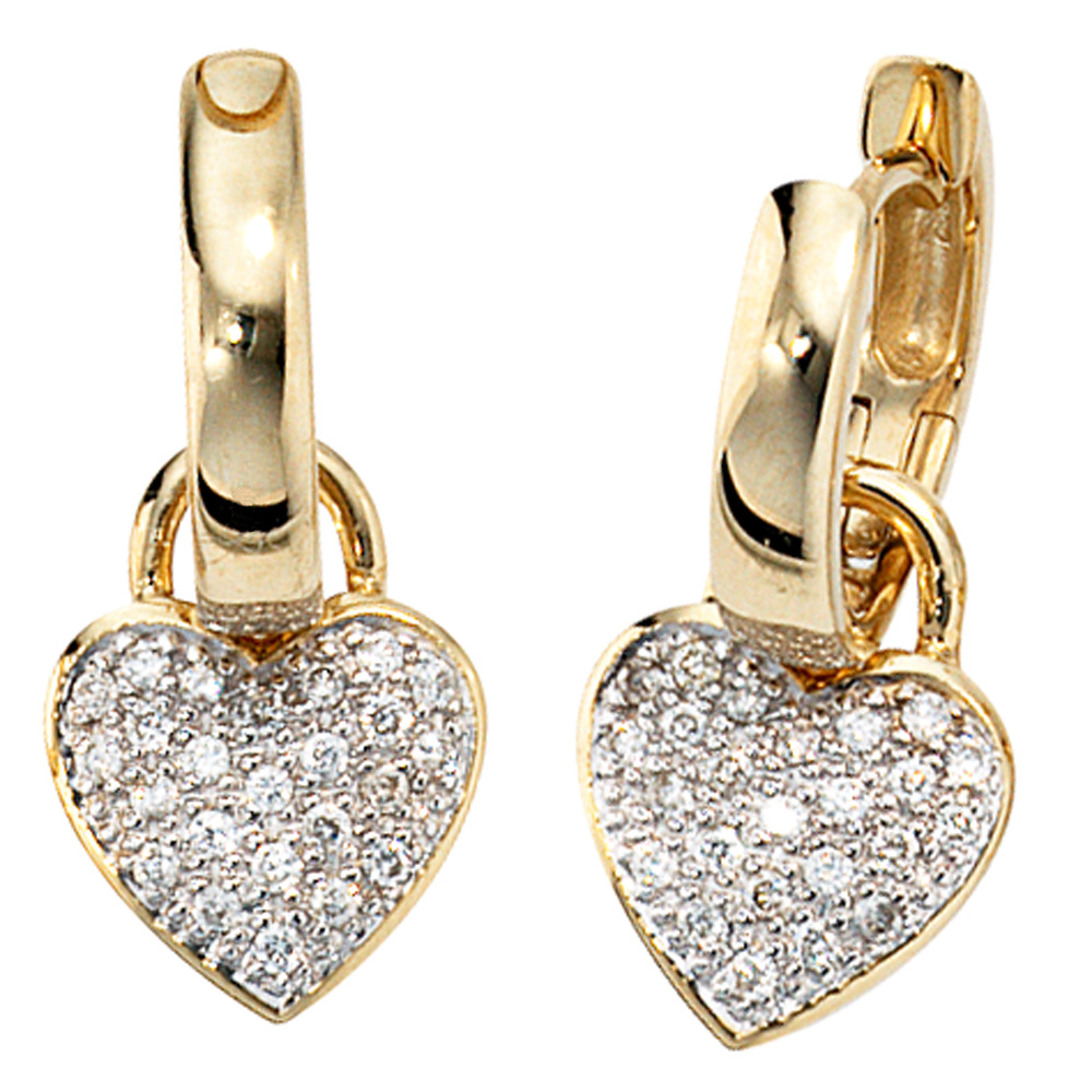 Creolen Herz 585 Gold Gelbgold bicolor 48 Diamanten Brillanten Ohrringe