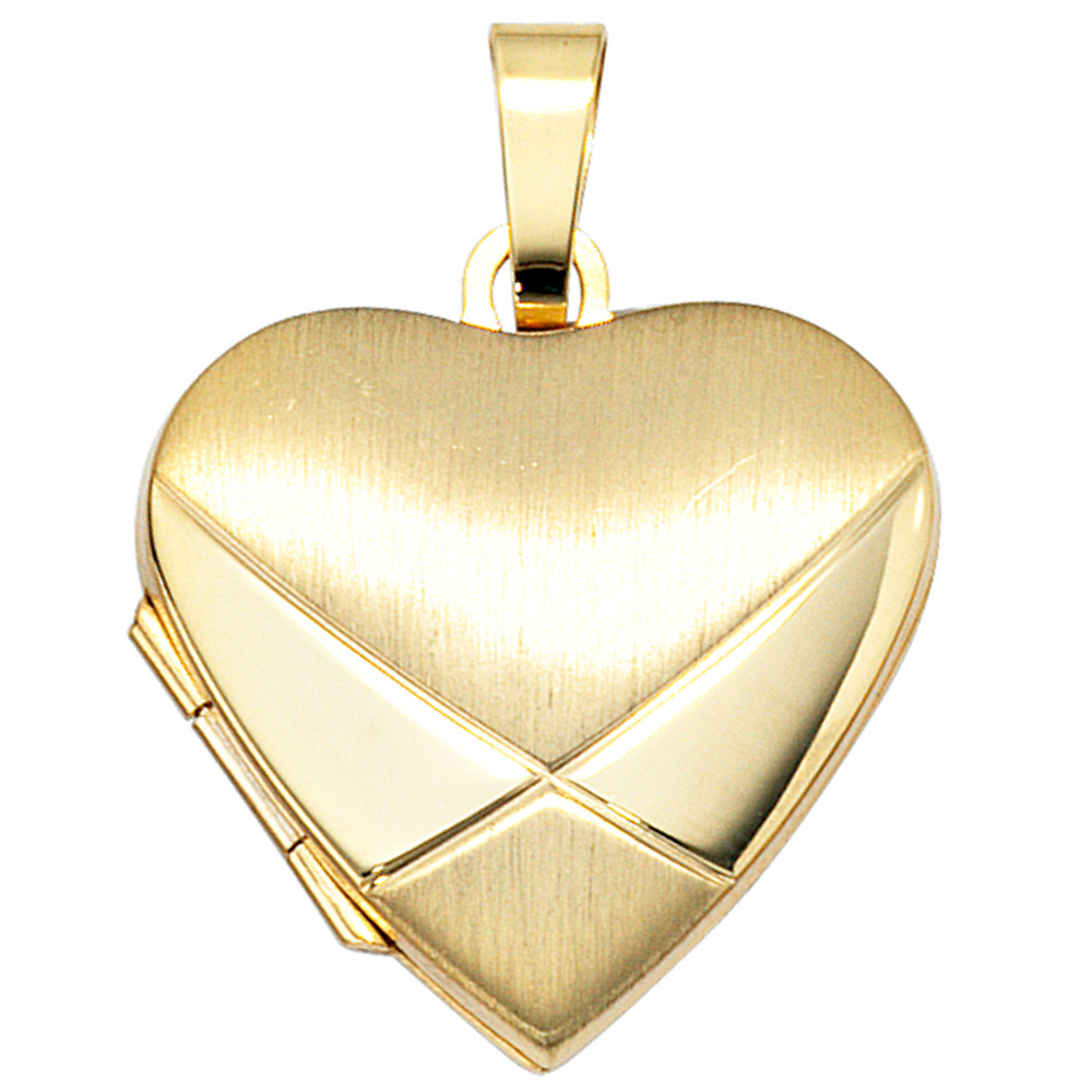 Medaillon Herz 585 Gold Gelbgold mattiert Anhänger zum Öffnen