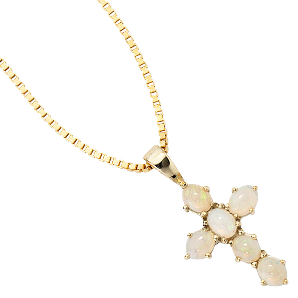 Anhänger Kreuz 585 Gold Gelbgold 6 Opale Kreuzanhänger Goldkreuz