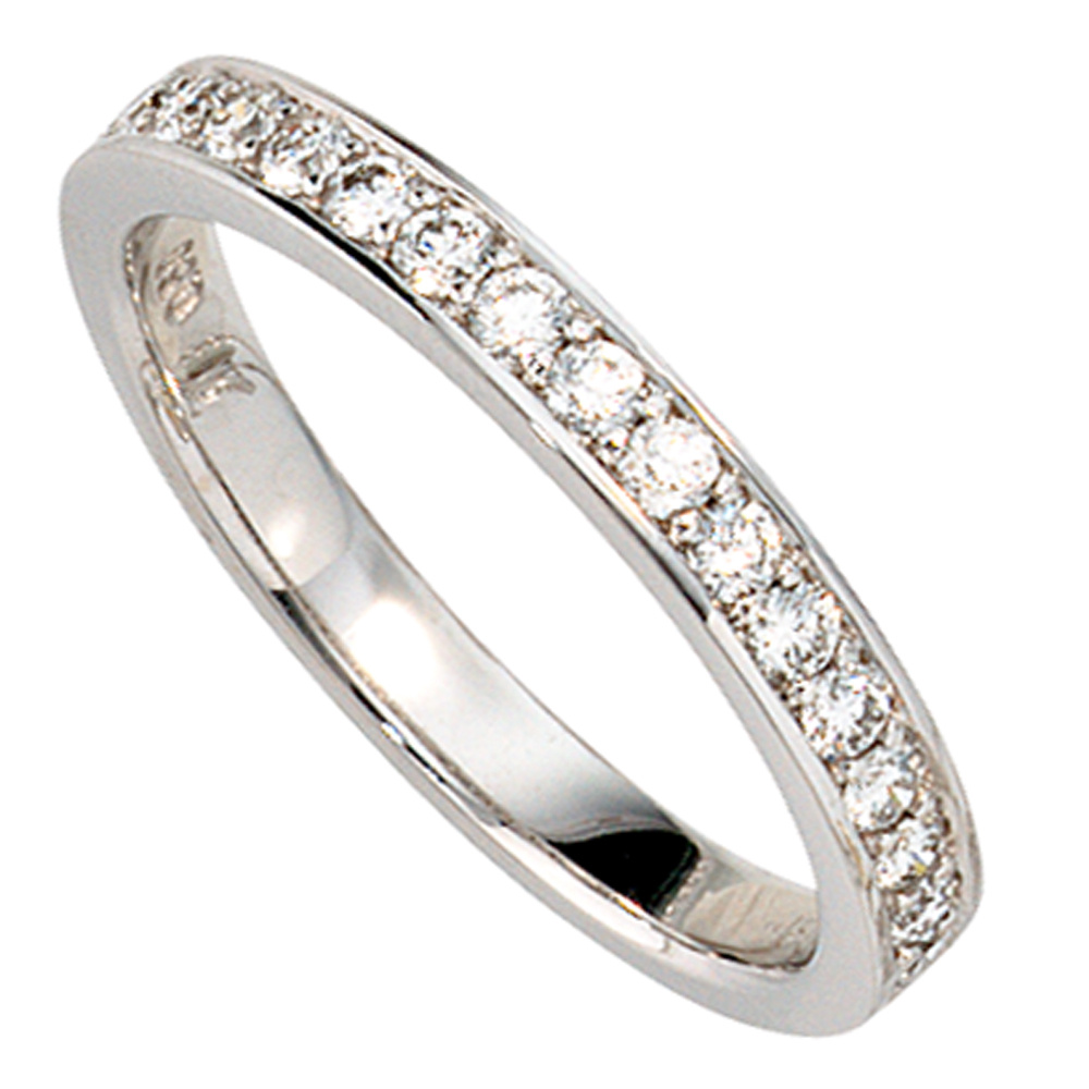 Damenring aus 14 Karat (585) Weißgold, mit 17 Diamant-Brillanten, 0,50 ct., W/SI wesselton (weiß), SI=(kleine, mit bloßem Auge nicht erkennbare natürliche Einschlüsse), Feinbearbeitung gut, Breite ca. 2,8 mm, Tiefe ca. 2,1 mm, Gewicht ca. 3,1 g * Bitte beachten Sie die Maße! Auf dem Foto kann der Artikel größer wirken *