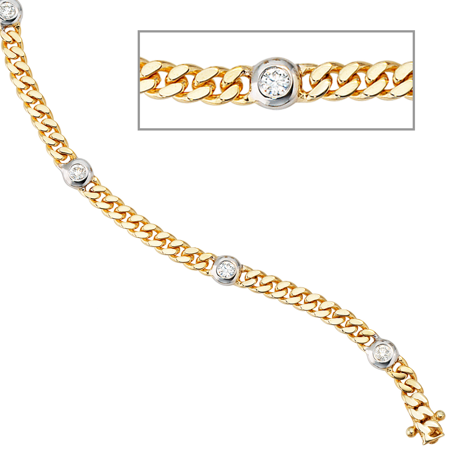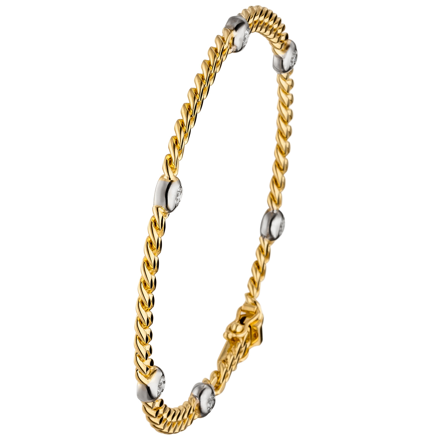 Armband 585 Gold Gelbgold Weißgold bicolor 6 Diamanten Brillanten 19 cm