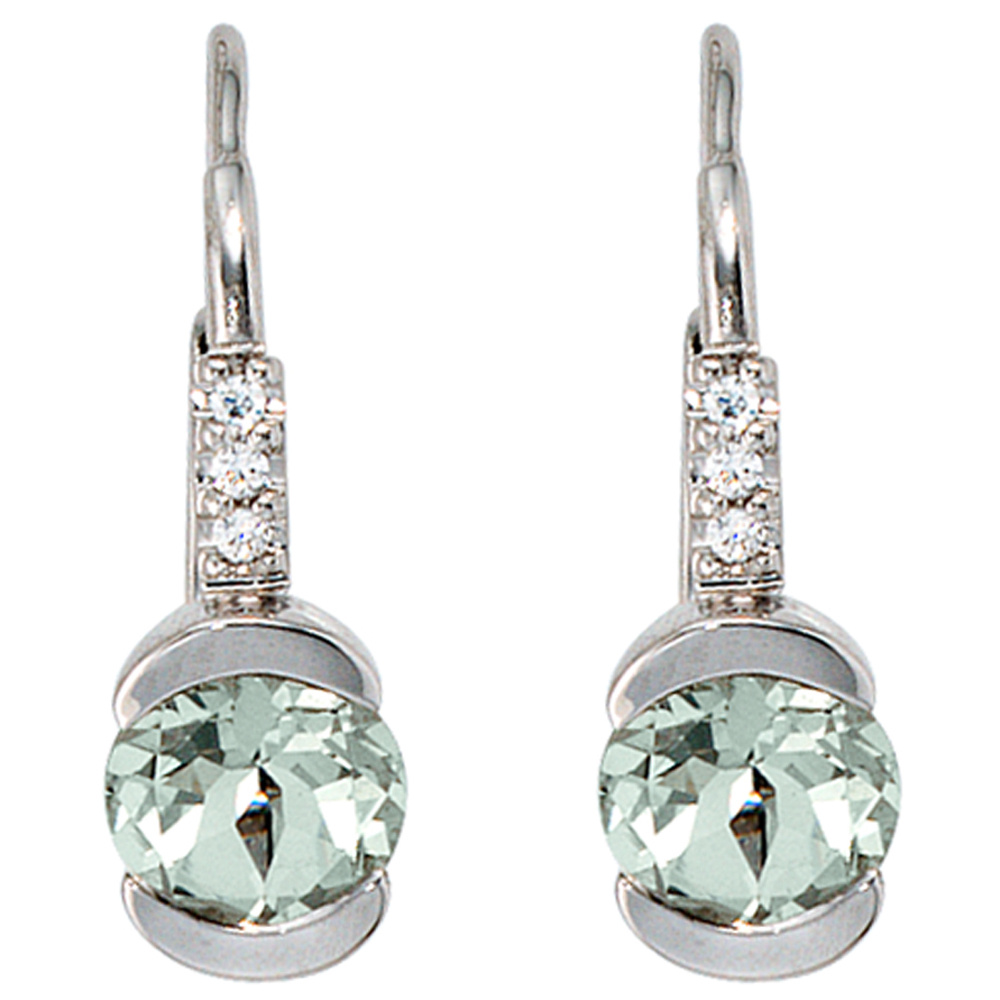 Boutons 585 Gold Weißgold 6 Diamanten 2 Amethyste grün Ohrringe Ohrhänger Boutons 585 Gold Weißgold 6 Diamanten 2 Amethyste grün Ohrringe Ohrhänger