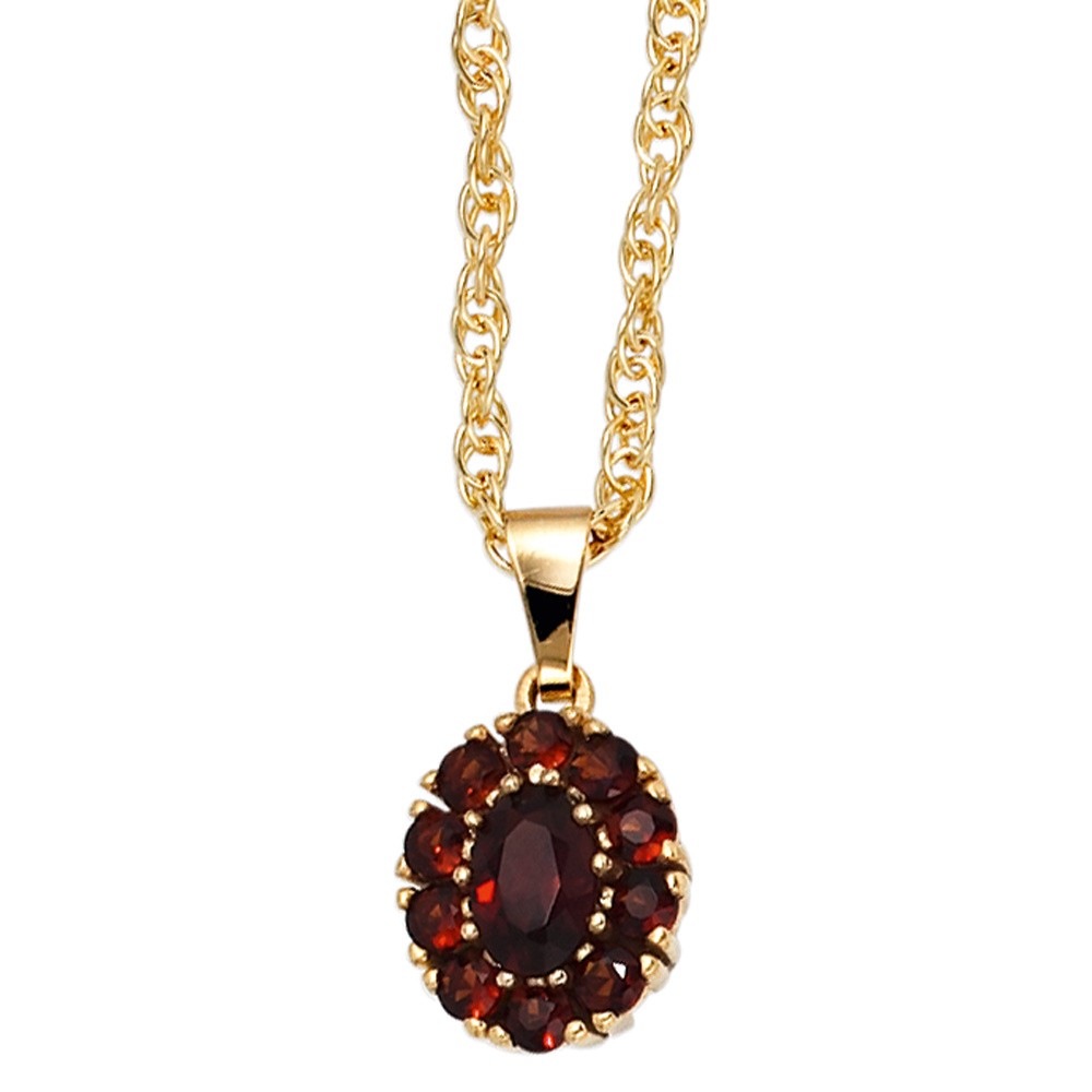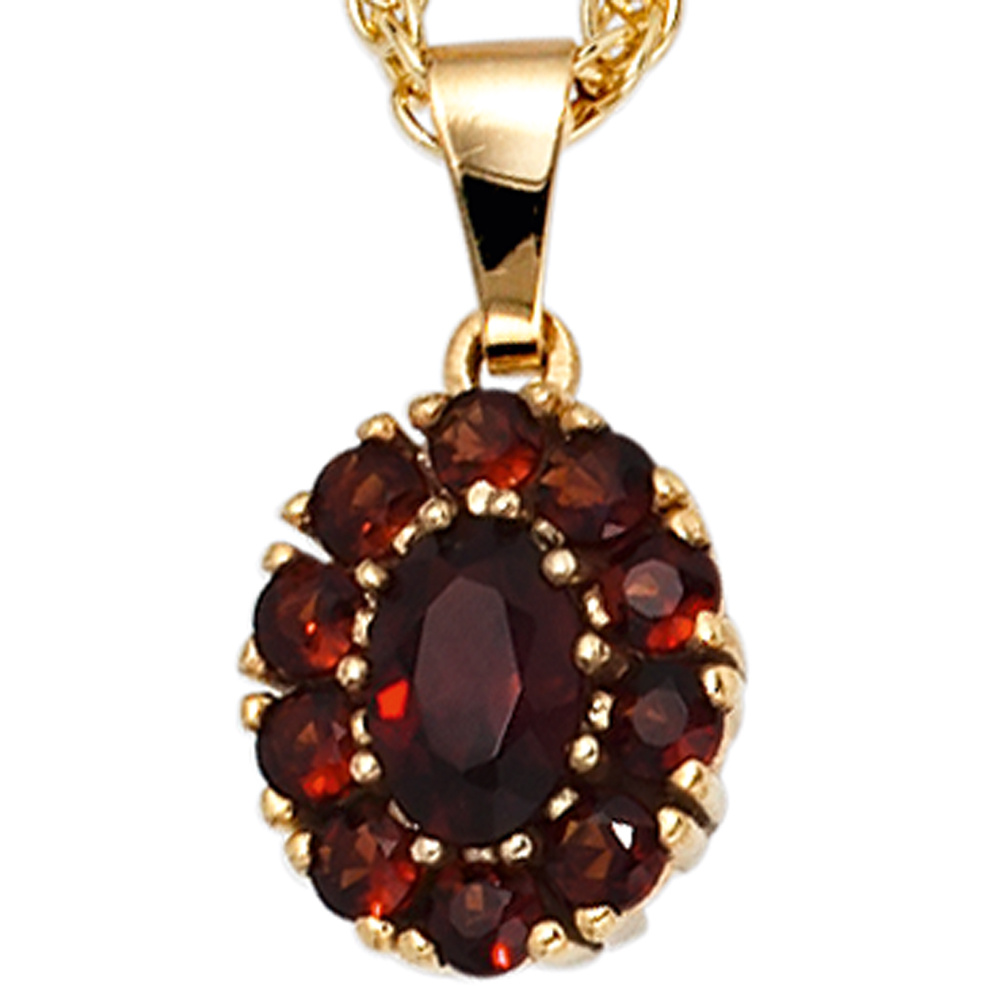 Anhänger oval 375 Gold Gelbgold 11 Granate rot Granatanhänger