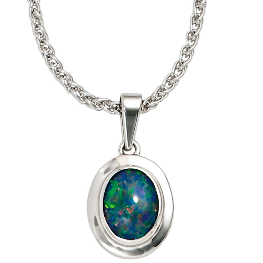 Anhänger oval 585 Gold Weißgold 1 Opal-Triplette Weißgoldanhänger Opalanhänger