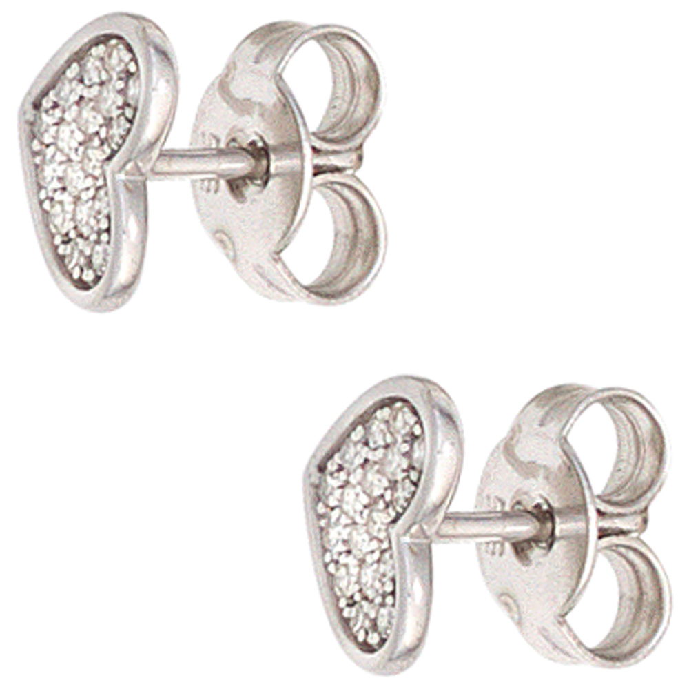Ohrstecker Herz Herzen 585 Gold Weißgold 34 Diamanten 0,14ct. Ohrringe