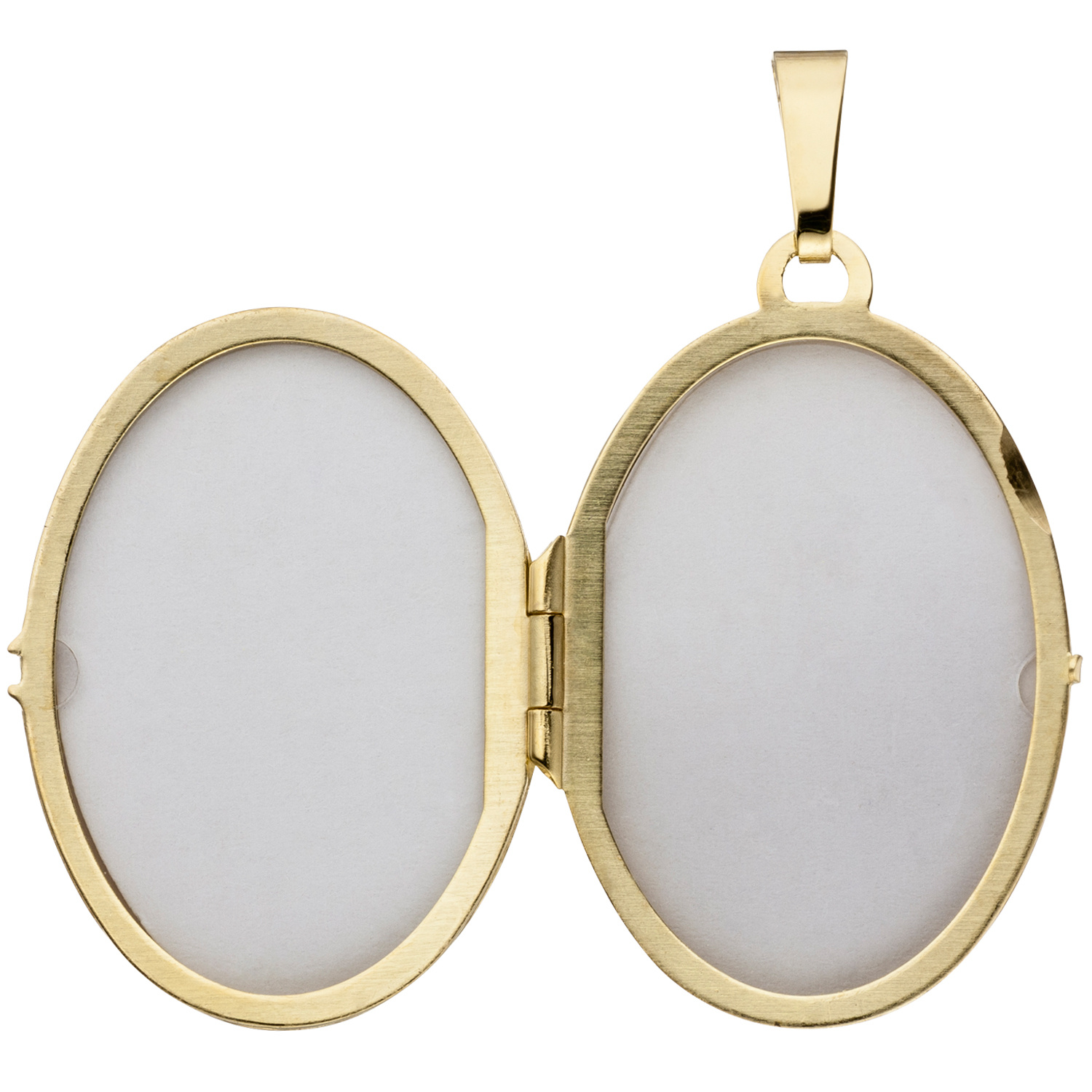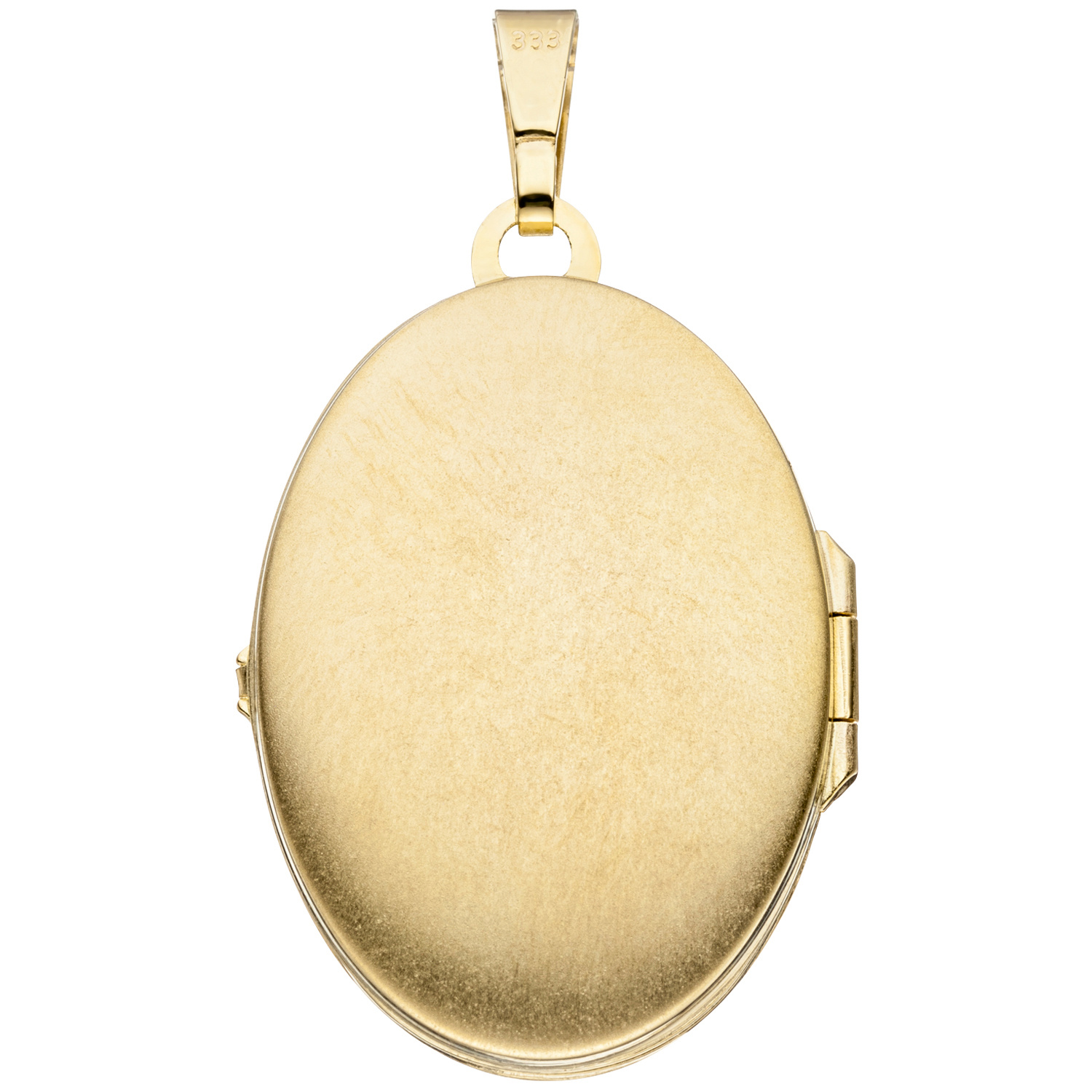 Medaillon oval 333 Gold Gelbgold bicolor mattiert 2 Zirkonia Anhänger zum Öffnen