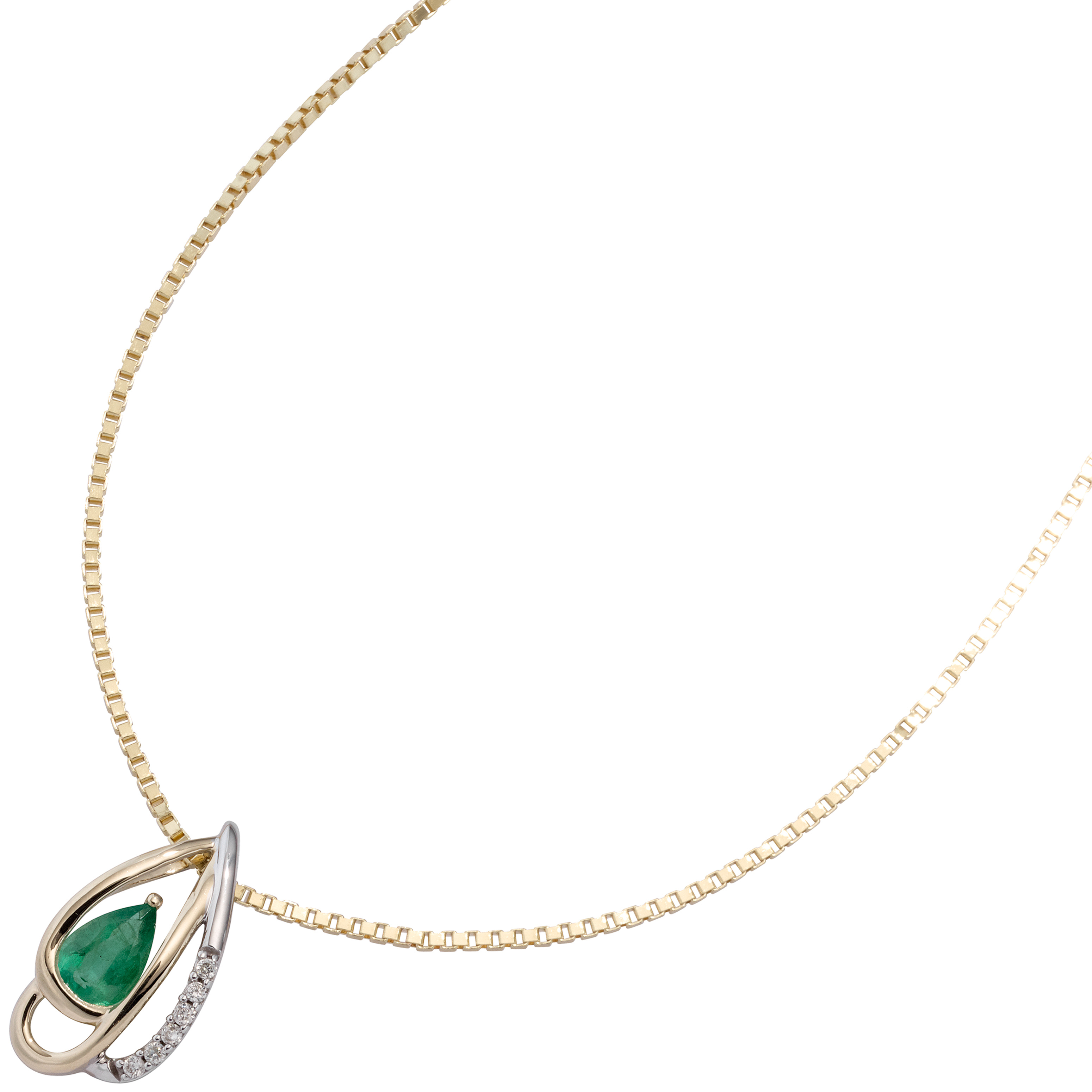 Anhänger 585 Gelbgold bicolor 6 Diamanten Brillanten 1 Smaragd grün Goldanhänger Anhänger 585 Gelbgold bicolor 6 Diamanten Brillanten 1 Smaragd grün Goldanhänger