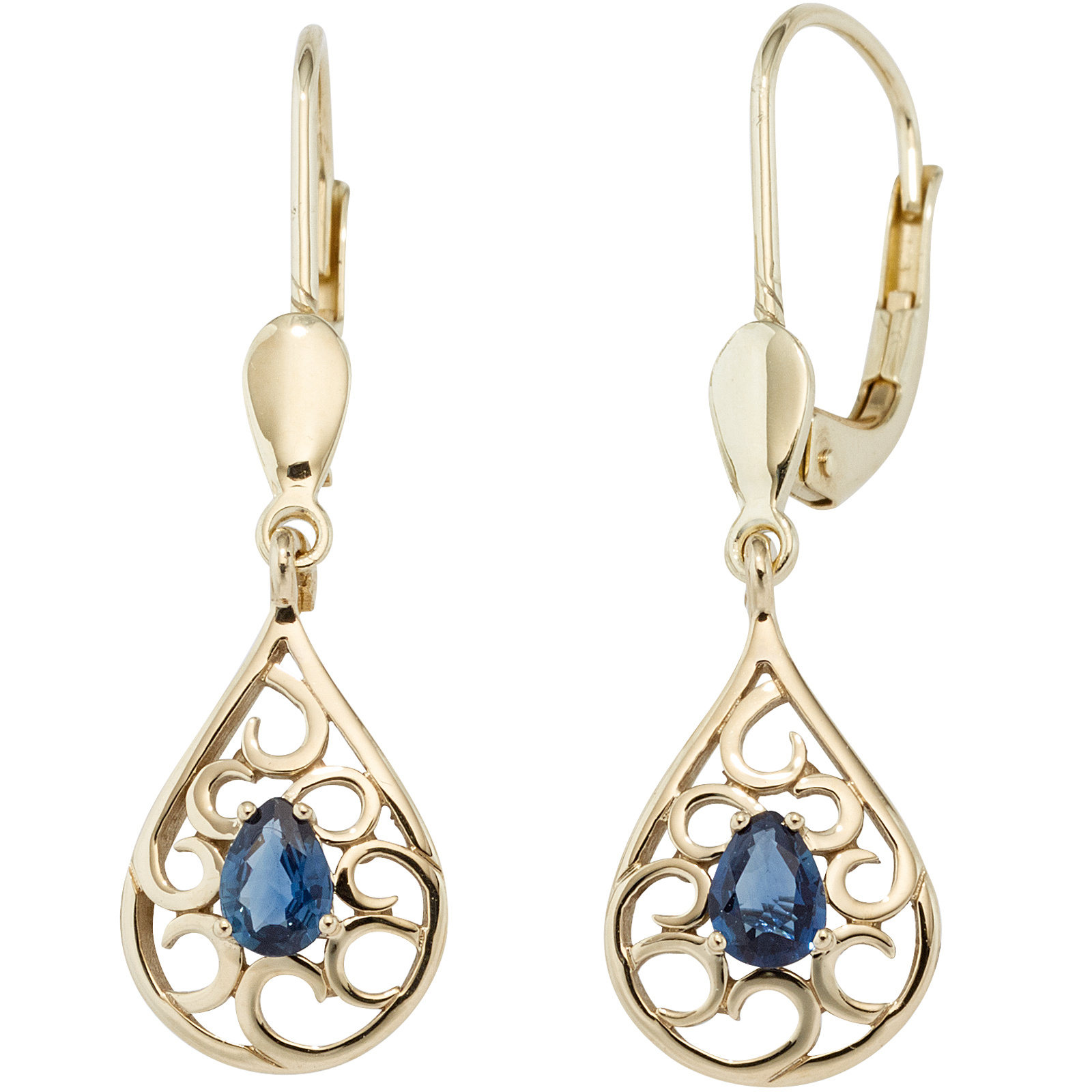 Boutons Tropfen 585 Gold Gelbgold 2 Safire blau Ohrringe Ohrhänger Goldohrringe