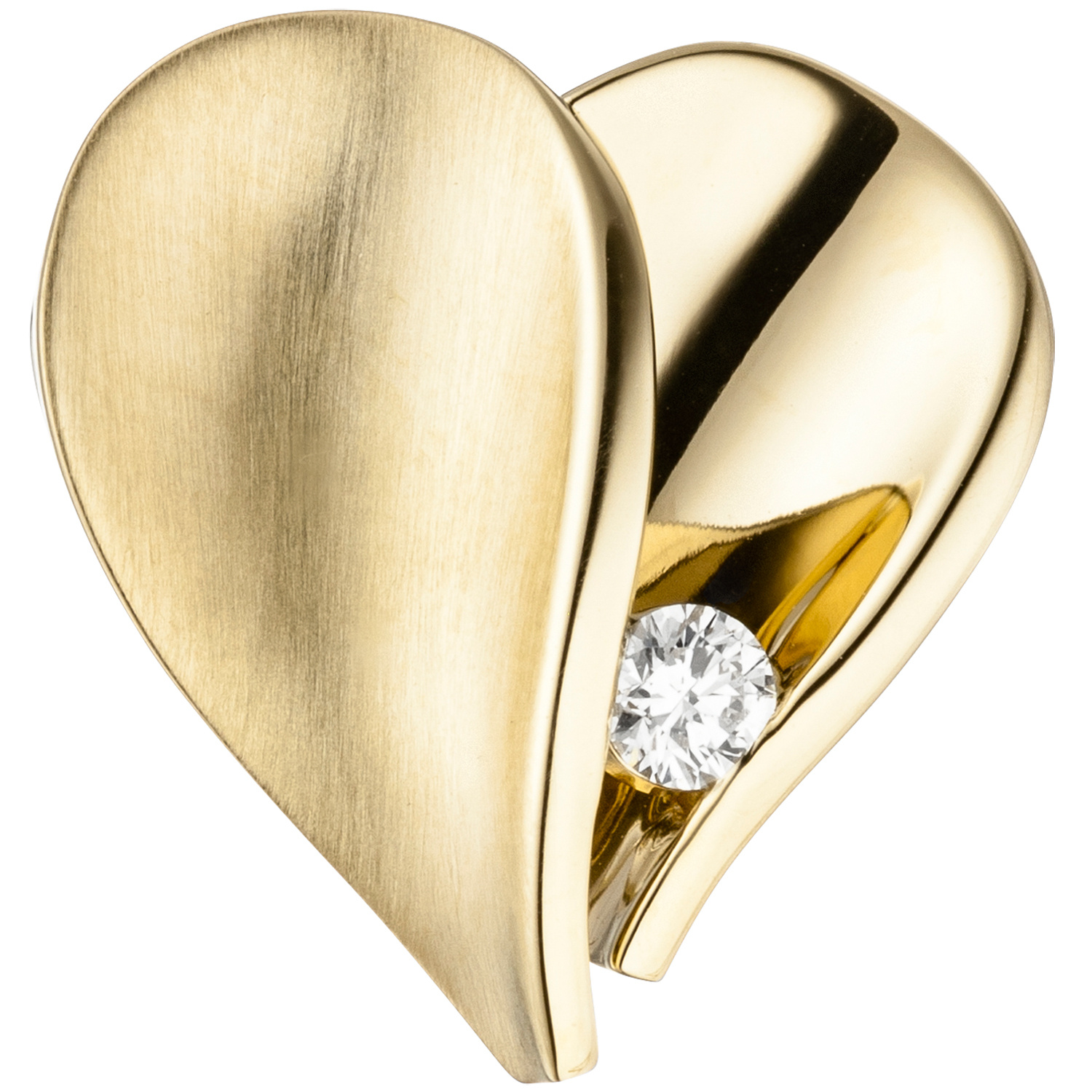 Anhänger Herz 585 Gold Gelbgold teilmatt 1 Diamant Brillant Herzanhänger