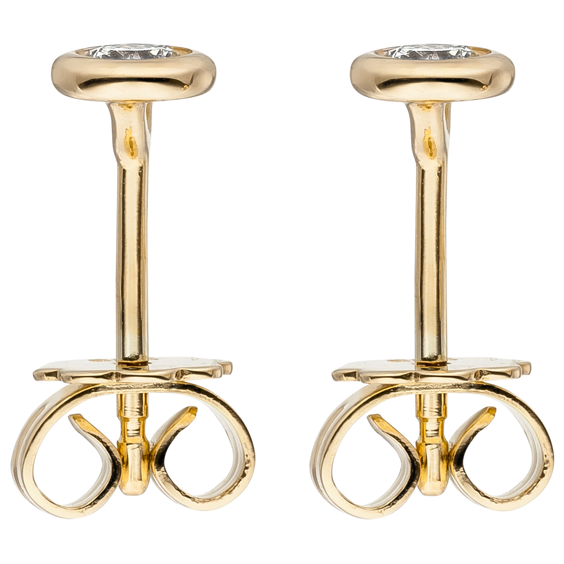 1 Paar Ohrstecker aus 14 Karat (585) Gelbgold mit 2 Diamant-Brillanten, 0,24 ct., Cr/IF, Durchmesser ca. 4,9 mm, Gewicht ca. 1,3 g * Bitte beachten Sie die Maße! Auf dem Foto kann der Artikel größer wirken *