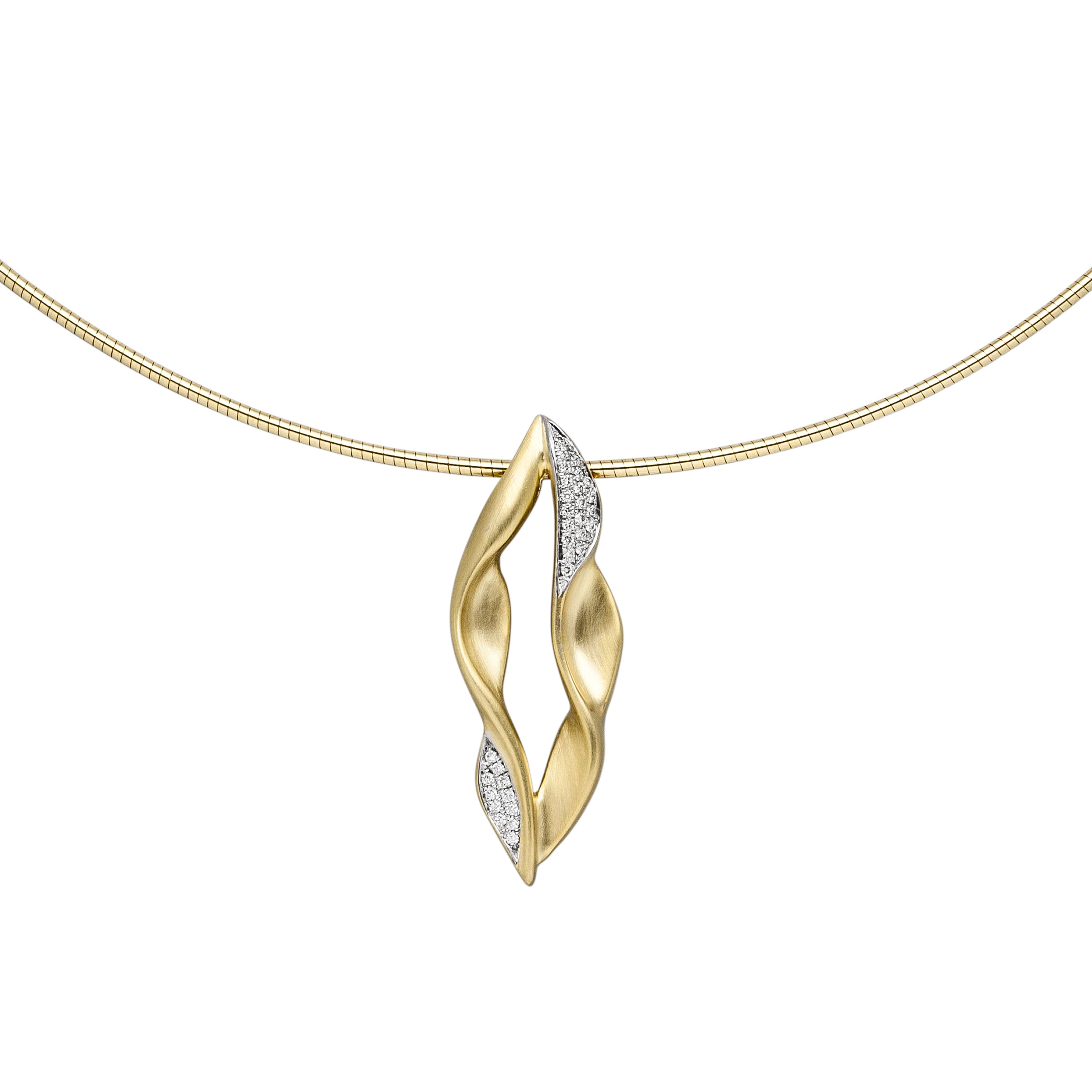 Anhänger 585 Gold Gelbgold teil matt 32 Diamanten Brillanten Goldanhänger