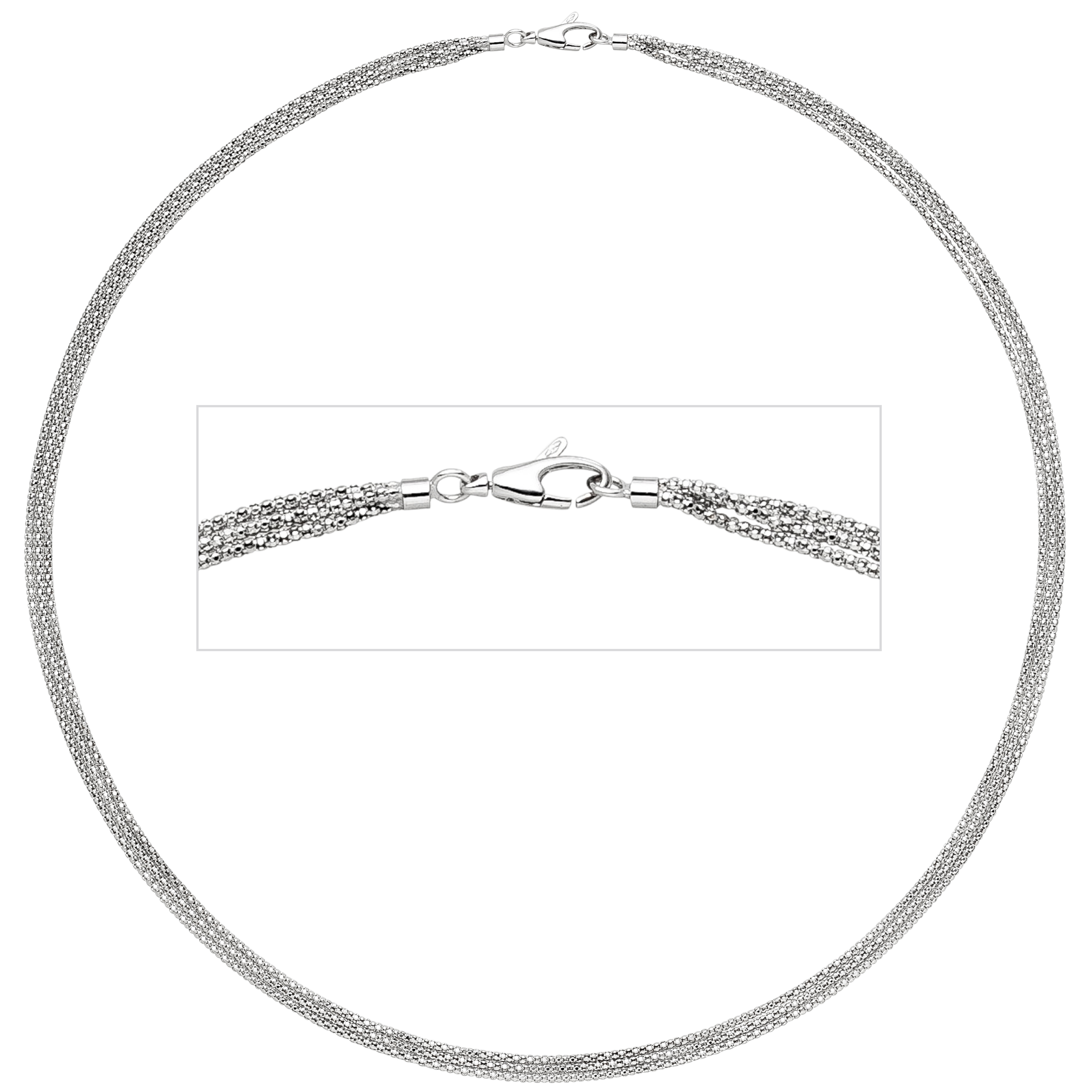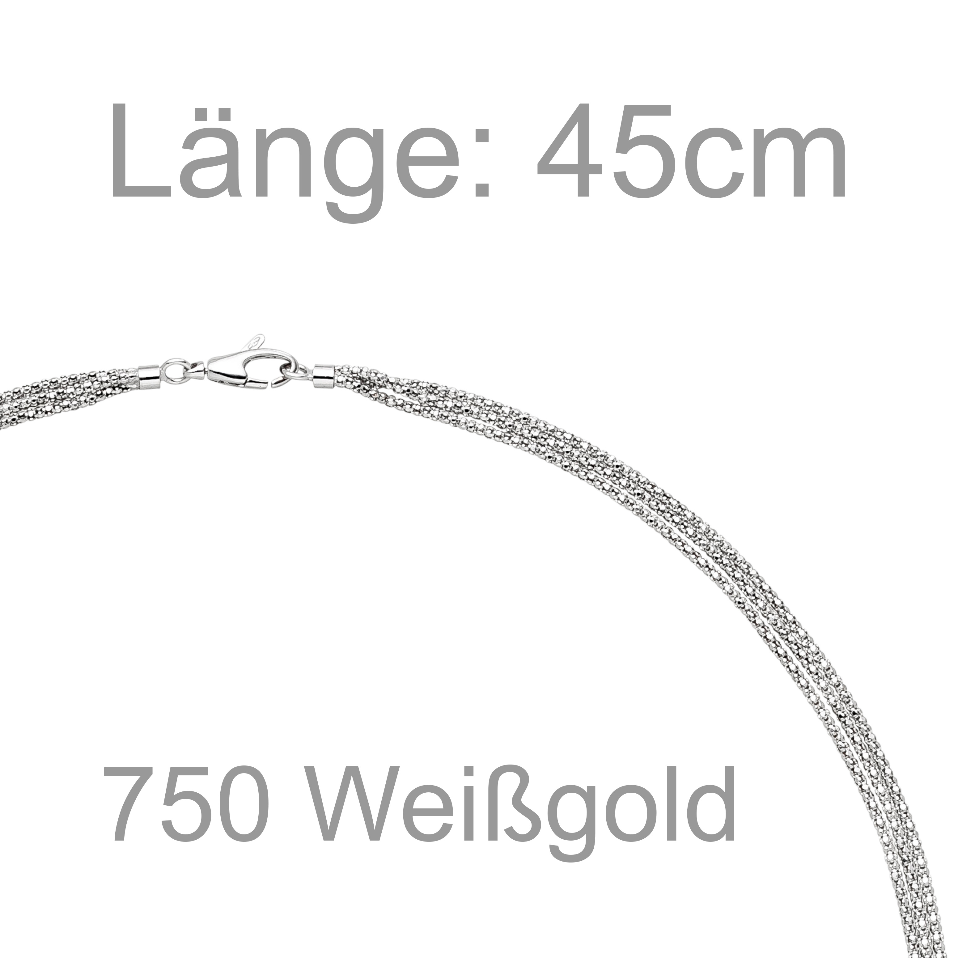 Halskette Popcorn Kette 3-reihig 750 Gold Weißgold 45 cm Goldkette Karabiner