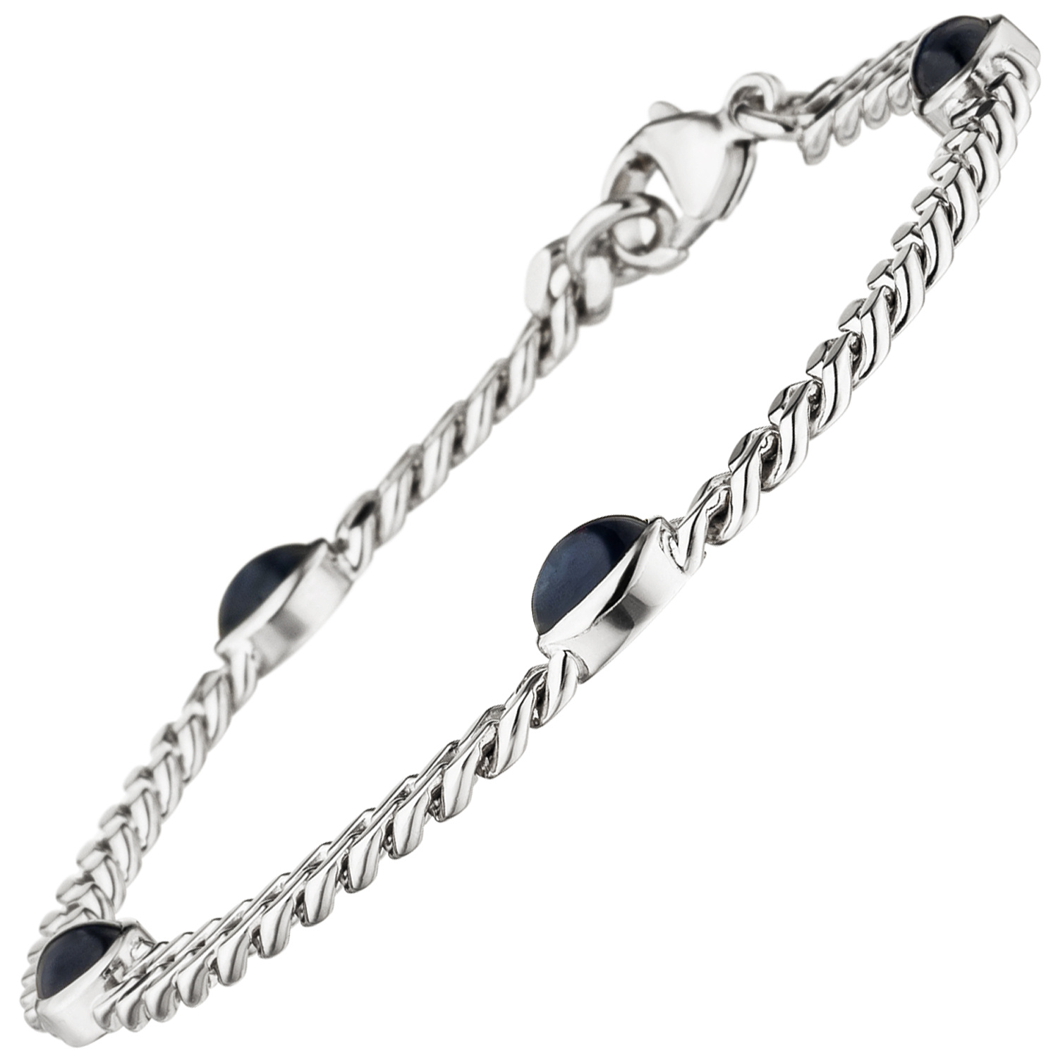 Armband 585 Gold Weißgold 4 Saphir Cabochons blau 19 cm Armband 585 Gold Weißgold 4 Saphir Cabochons blau 19 cm