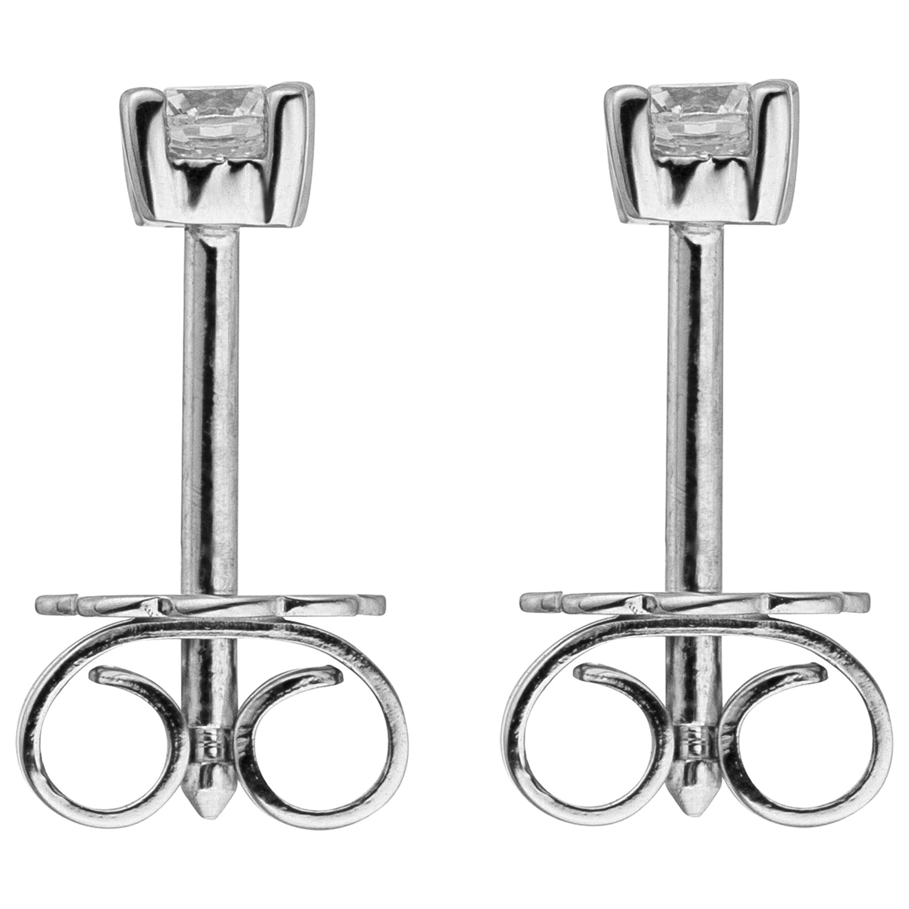1 Paar Ohrstecker aus 14 Karat (585) Weißgold mit 2 Diamant-Brillanten, 0,24 ct., W/SI wesselton (weiß), SI=(kleine, mit bloßem Auge nicht erkennbare natürliche Einschlüsse), Feinbearbeitung gut, Höhe ca. 3,3 mm, Breite ca. 3,3 mm, Gewicht ca. 1,1 g * Bitte beachten Sie die Maße! Auf dem Foto kann der Artikel größer wirken *