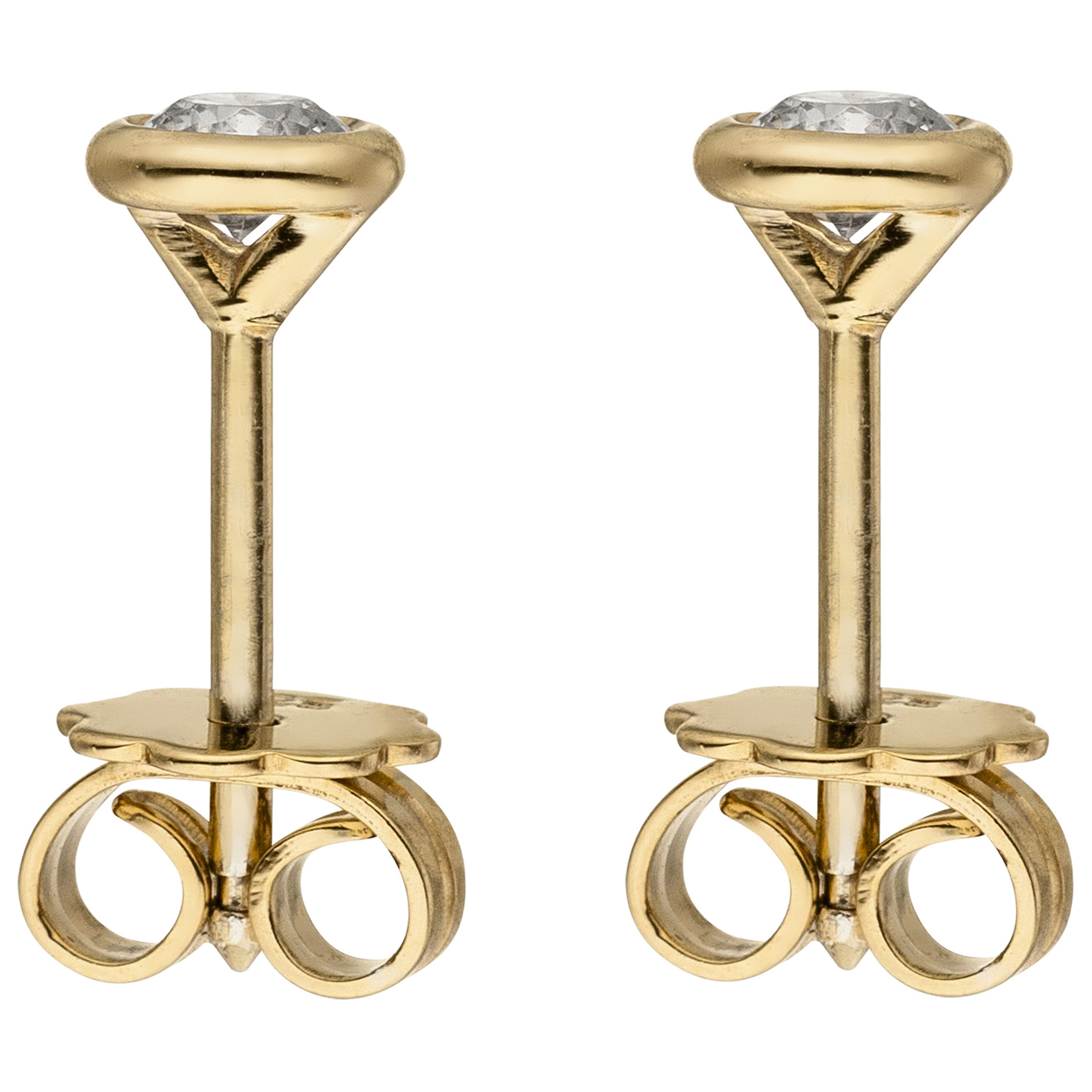 1 Paar Ohrstecker aus 14 Karat (585) Gelbgold mit 2 Diamant-Brillanten, 0,24 ct., W/SI wesselton (weiß), SI=(kleine, mit bloßem Auge nicht erkennbare natürliche Einschlüsse), Feinbearbeitung gut, Durchmesser ca. 4,8 mm, Gewicht ca. 1,2 g * Bitte beachten Sie die Maße! Auf dem Foto kann der Artikel größer wirken *