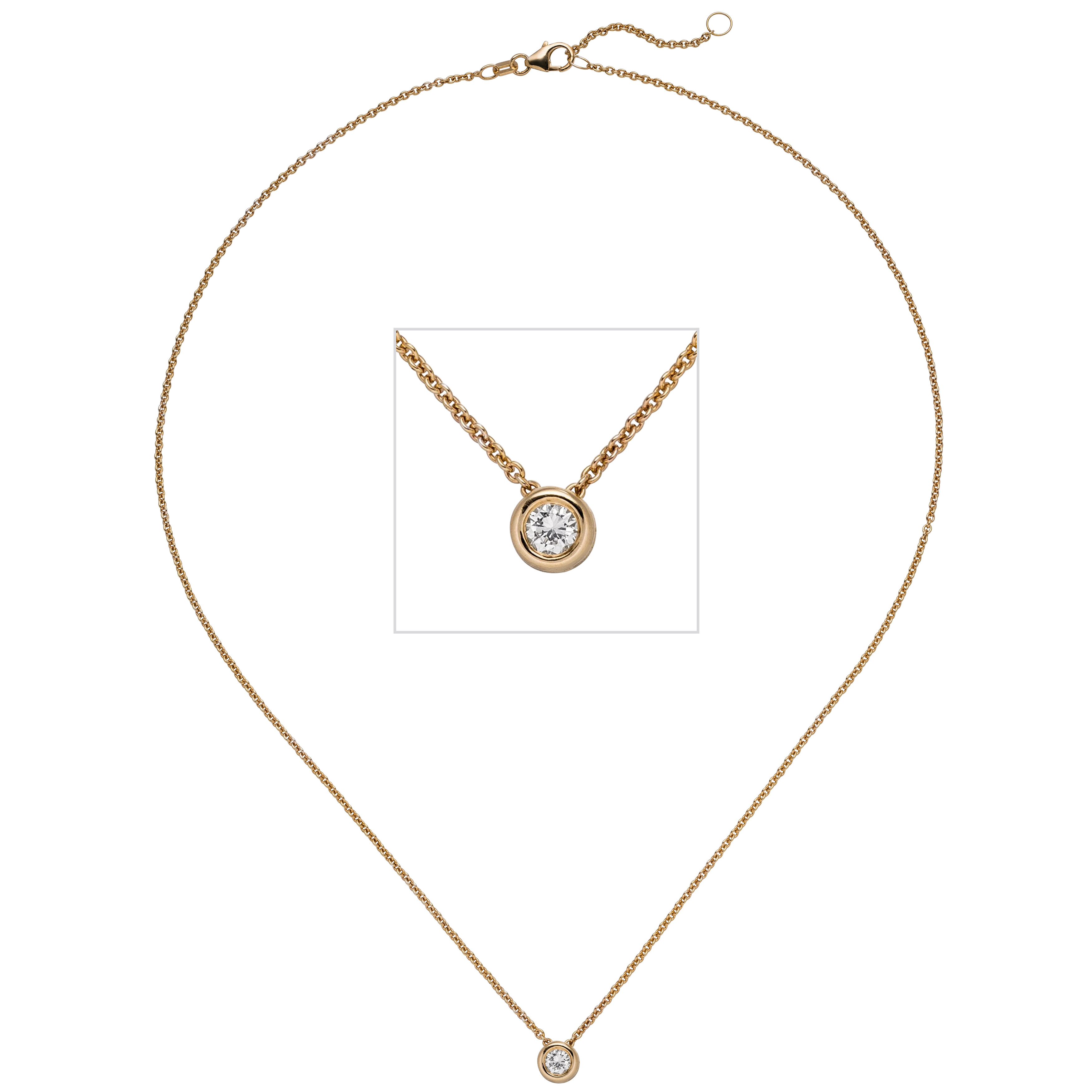 Collier Kette mit Anhänger 585 Gold Rotgold 1 Diamant Brillant 0,15 ct. 45 cm Collier Kette mit Anhänger 585 Gold Rotgold 1 Diamant Brillant 0,15 ct. 45 cm Collier Kette mit Anhänger 585 Gold Rotgold 1 Diamant Brillant 0,15 ct. 45 cm
