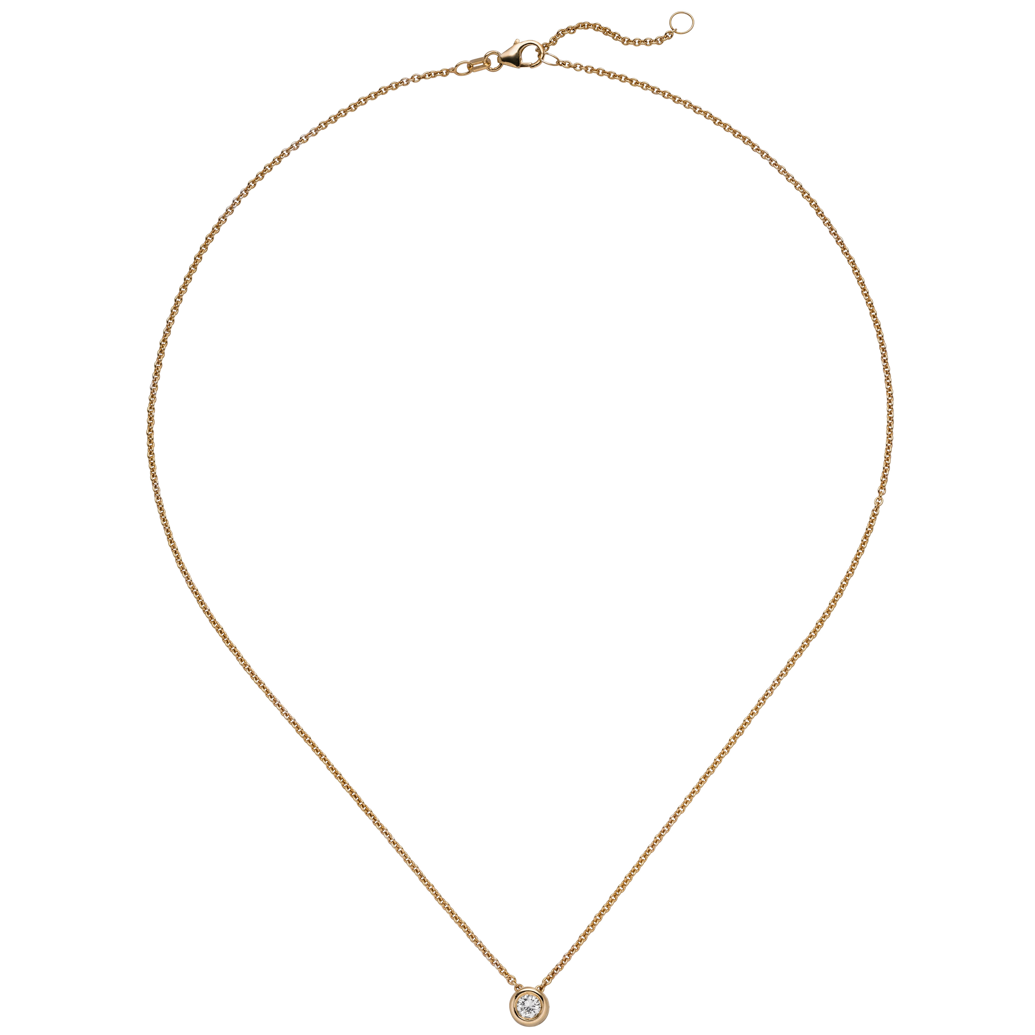 Collier Kette mit Anhänger 585 Gold Rotgold 1 Diamant Brillant 0,15 ct. 45 cm