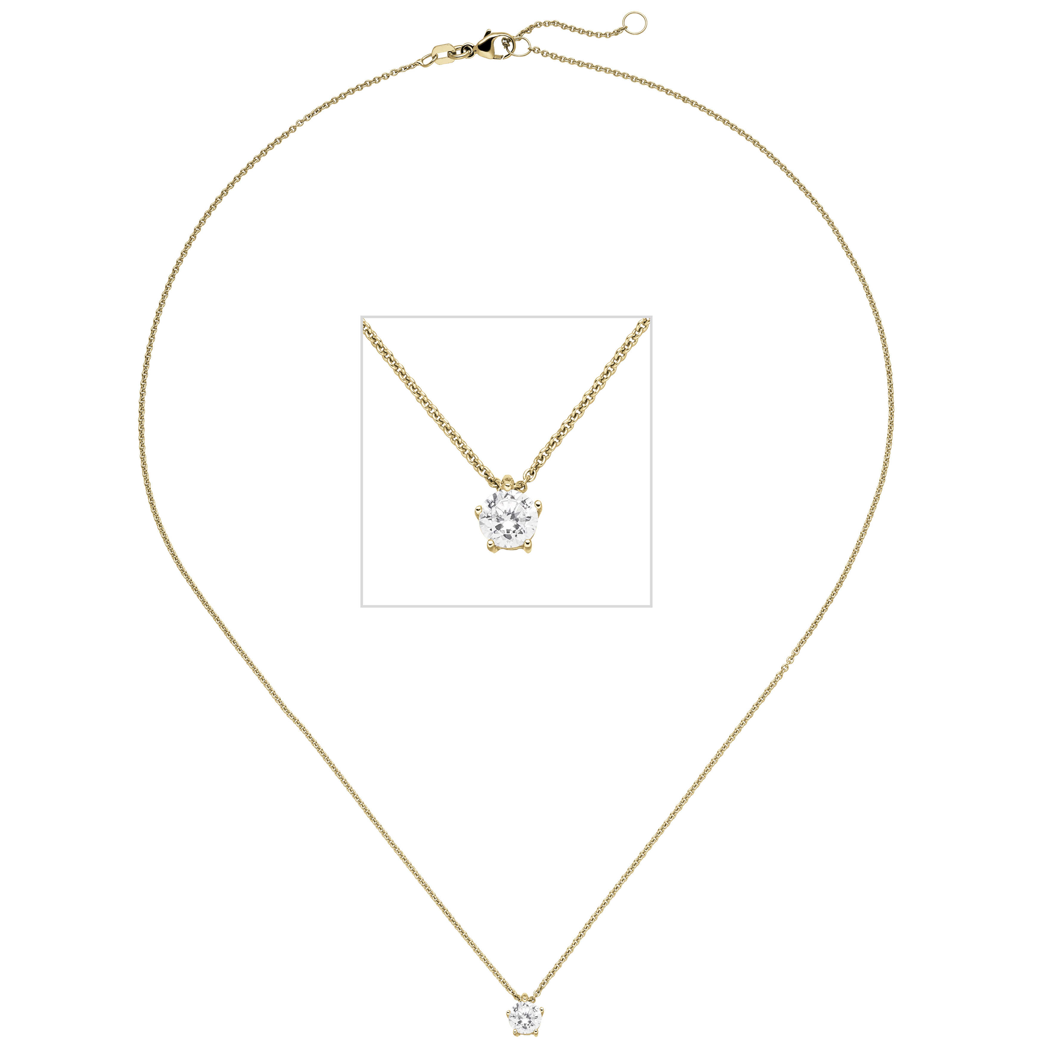 Collier Kette mit Anhänger 585 Gold Gelbgold 1 Diamant Brillant 0,50 ct. 45 cm Collier Kette mit Anhänger 585 Gold Gelbgold 1 Diamant Brillant 0,50 ct. 45 cm Collier Kette mit Anhänger 585 Gold Gelbgold 1 Diamant Brillant 0,50 ct. 45 cm