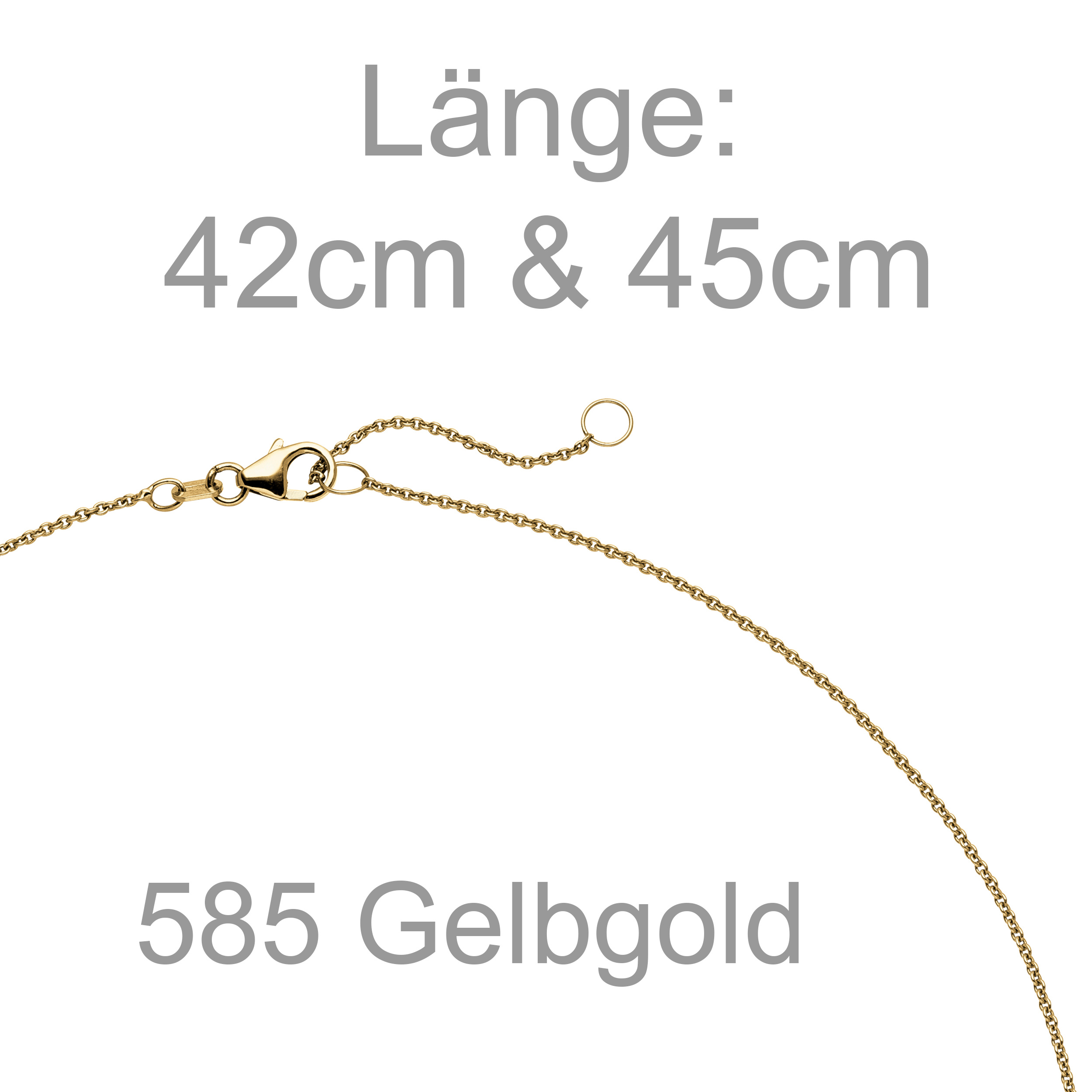 Collier / Ankerkette mit Anhänger aus 14 Karat (585) Gelbgold mit einem Diamant-Brillanten, 0,50 ct., W/SI wesselton (weiß), SI=(kleine, mit bloßem Auge nicht erkennbare natürliche Einschlüsse), Feinbearbeitung gut, mit Karabinerverschluss, Länge ca. 45 cm, auf 42 cm verkürzbar, Kettenstärke ca. 1,1 mm x 1,1 mm, Maße des Anhängers: Höhe ca. 6,7 mm, Breite ca. 5,9 mm, Tiefe ca. 4,5 mm, Gewicht ca. 2,4 g * Bitte beachten Sie die Maße! Auf dem Foto kann der Artikel größer wirken *