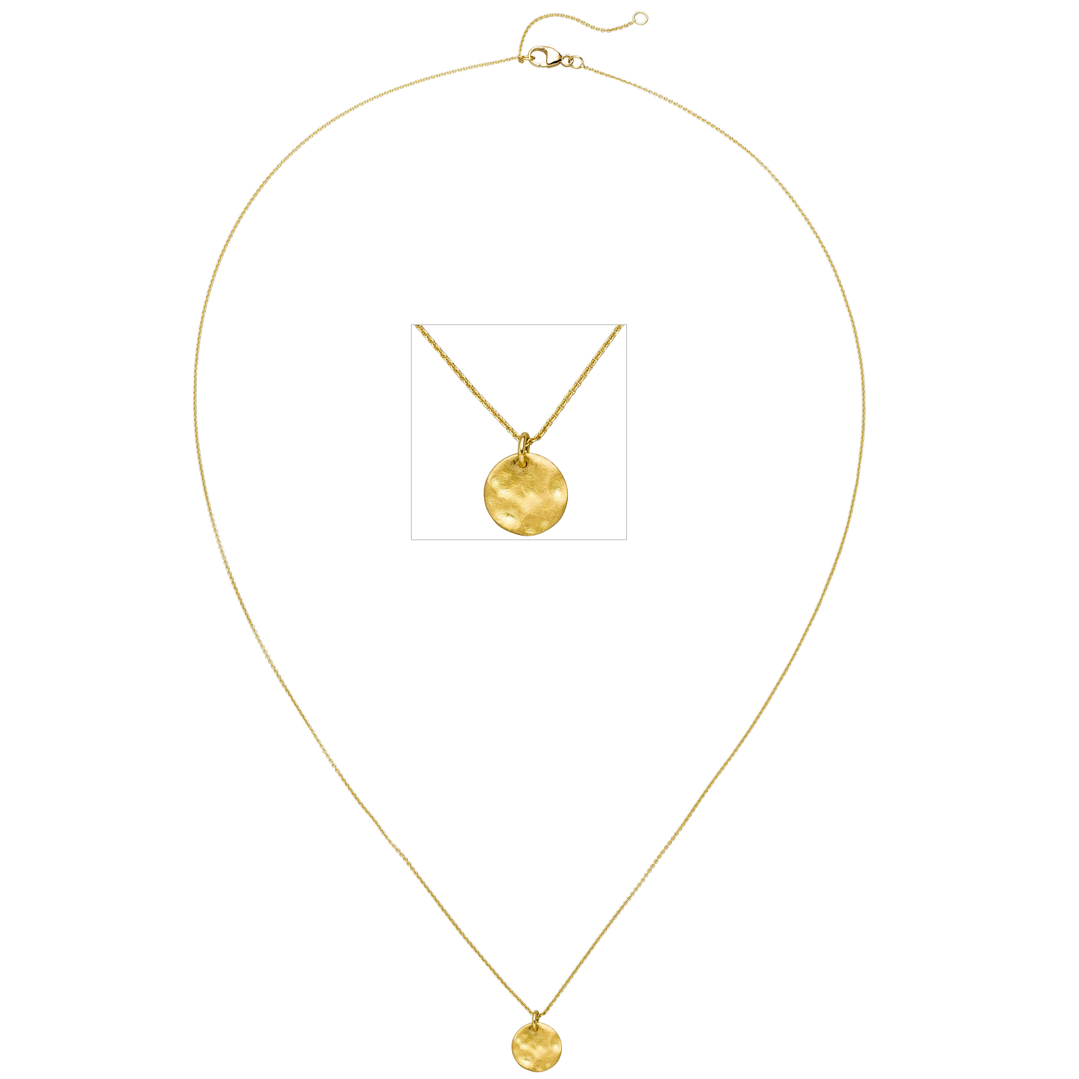 Collier / Ankerkette mit Anhänger aus 18 Karat (750) Gelbgold, mattiert, mit Struktur, mit Karabinerverschluss, Länge ca. 45 cm, auf 42 cm verkürzbar, Durchmesser ca. 7,8 mm, Kettenstärke ca. 0,6 mm x 0,6 mm, Tiefe ca. 0,8 mm, Gewicht ca. 1,7 g * Bitte beachten Sie die Maße! Auf dem Foto kann der Artikel größer wirken *
