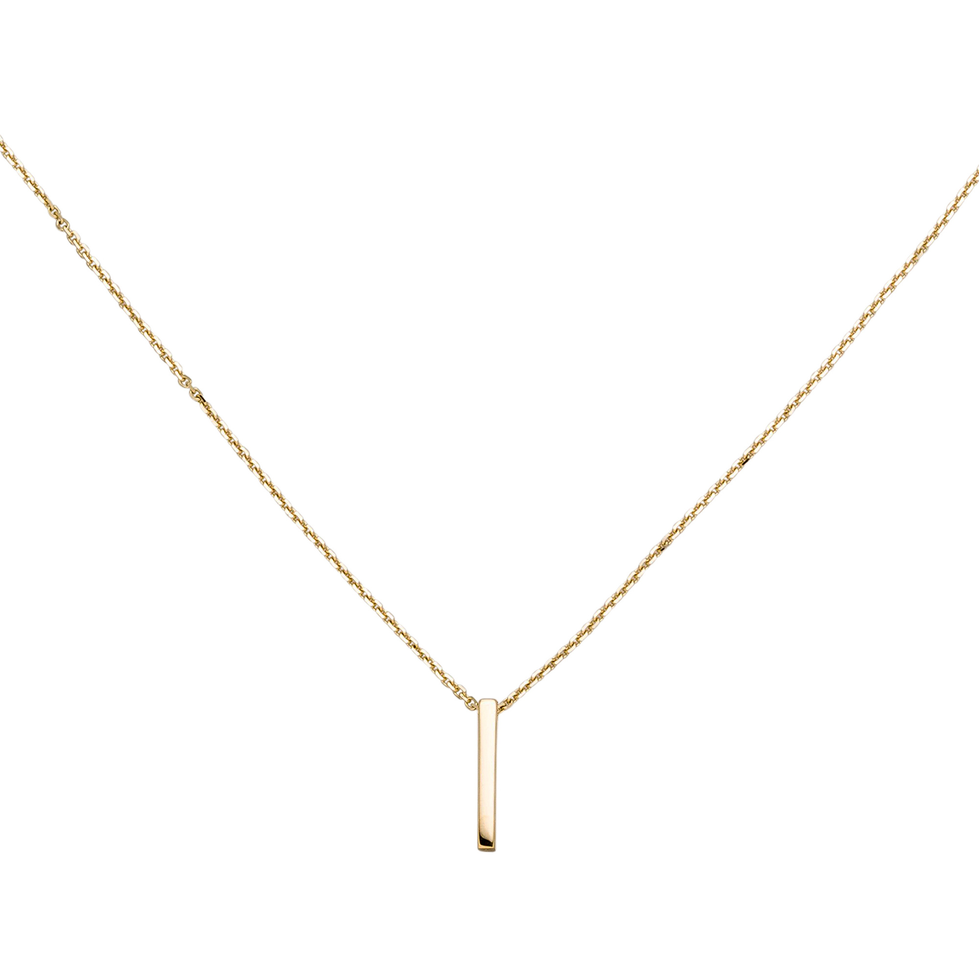 Collier / Ankerkette mir Anhänger "Stab" aus 9 Karat (375) Gelbgold mit Federringverschluss, Länge ca. 42 cm, Kettenstärke ca. 0,4 mm x 0,4 mm, Breite ca. 1,2 mm, Tiefe ca. 2 mm, Gewicht ca. 1,1 g * Bitte beachten Sie die Maße! Auf dem Foto kann der Artikel größer wirken *