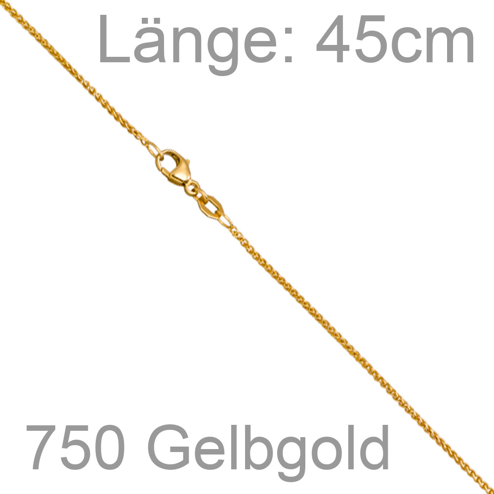 Zopfkette 750 Gold Gelbgold 1,3 mm 45 cm Kette Halskette Goldkette Karabiner Zopfkette 750 Gold Gelbgold 1,3 mm 45 cm Kette Halskette Goldkette Karabiner