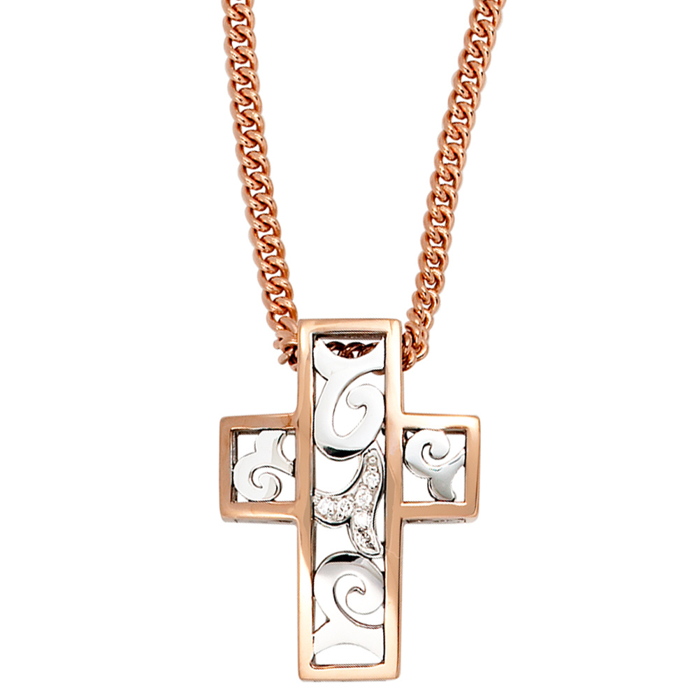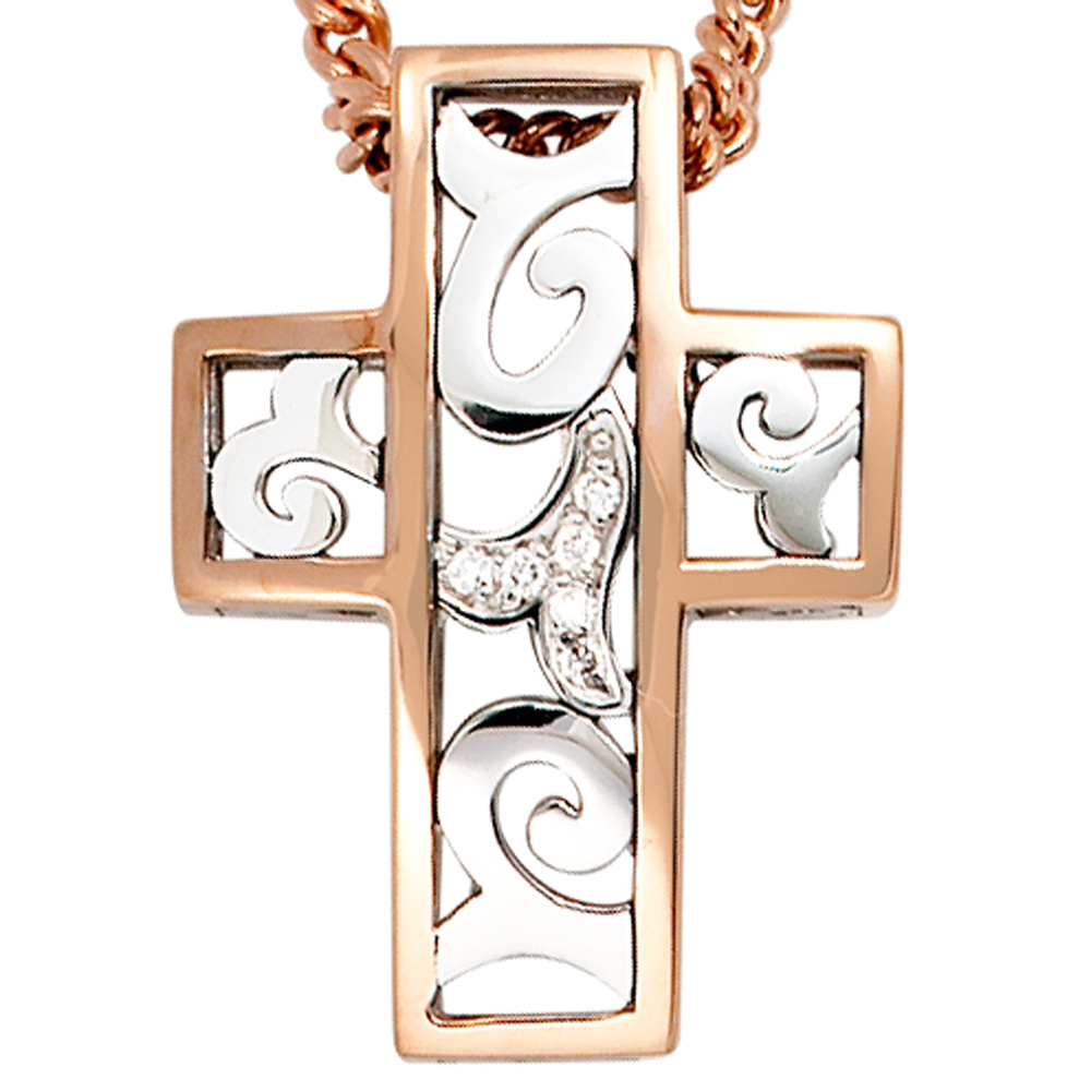Anhänger Kreuz 585 Gold Weißgold Rotgold bicolor 6 Diamanten Brillanten