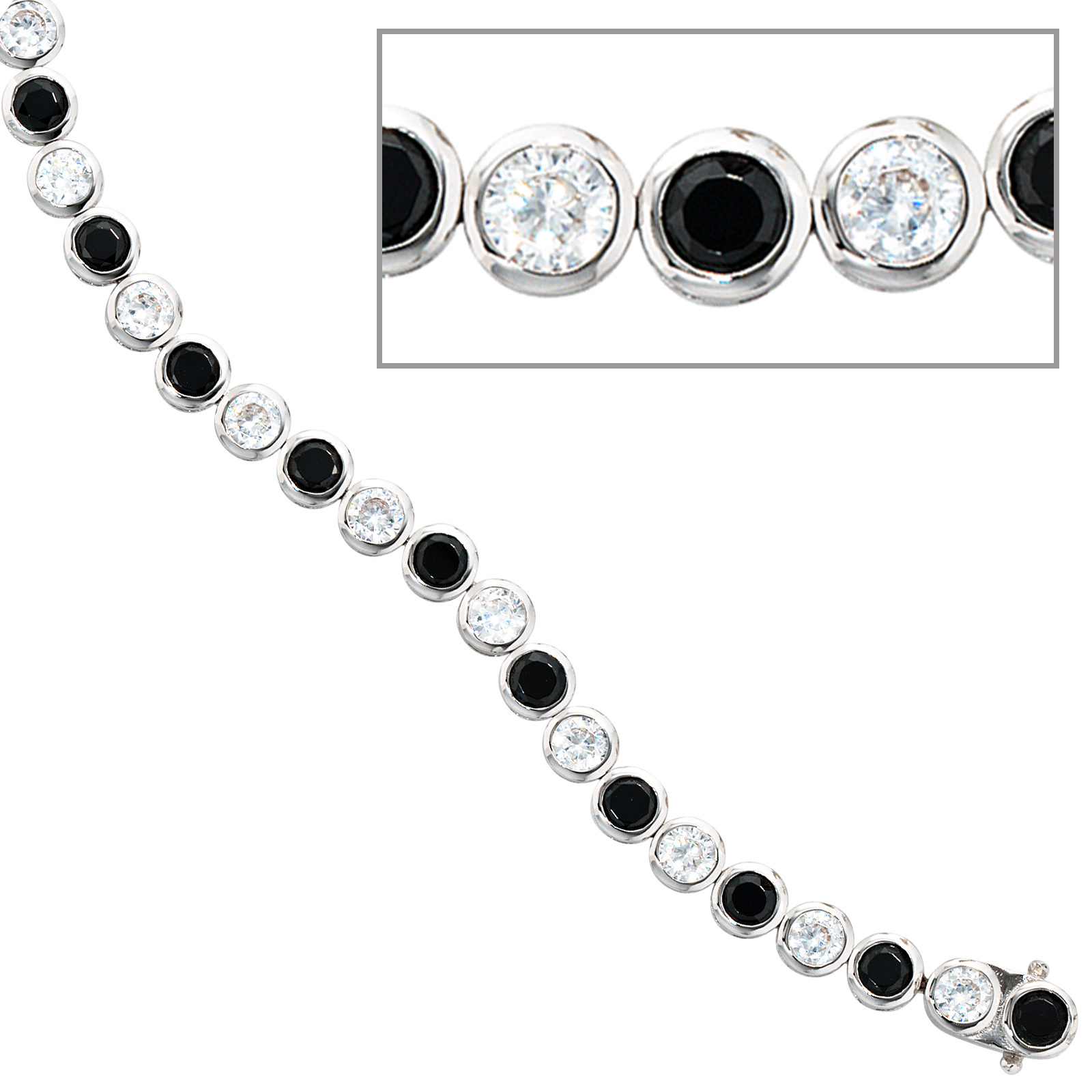 Armband 925 Silber 19 cm mit Zirkonia schwarz weiß Silberarmband Kastenschloss