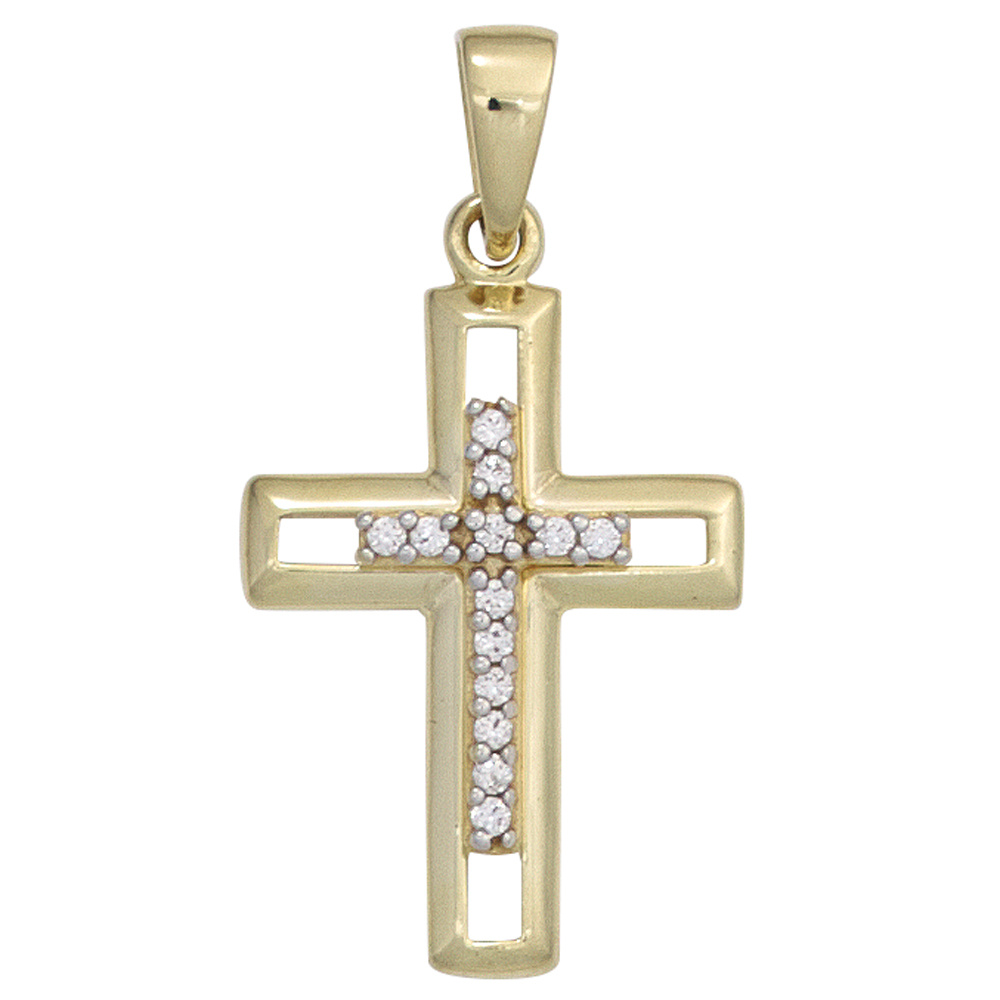 Anhänger Kreuz 333 Gold Gelbgold 13 Zirkonia Kreuzanhänger Goldkreuz
