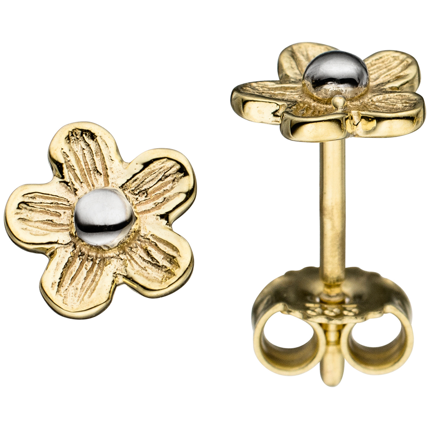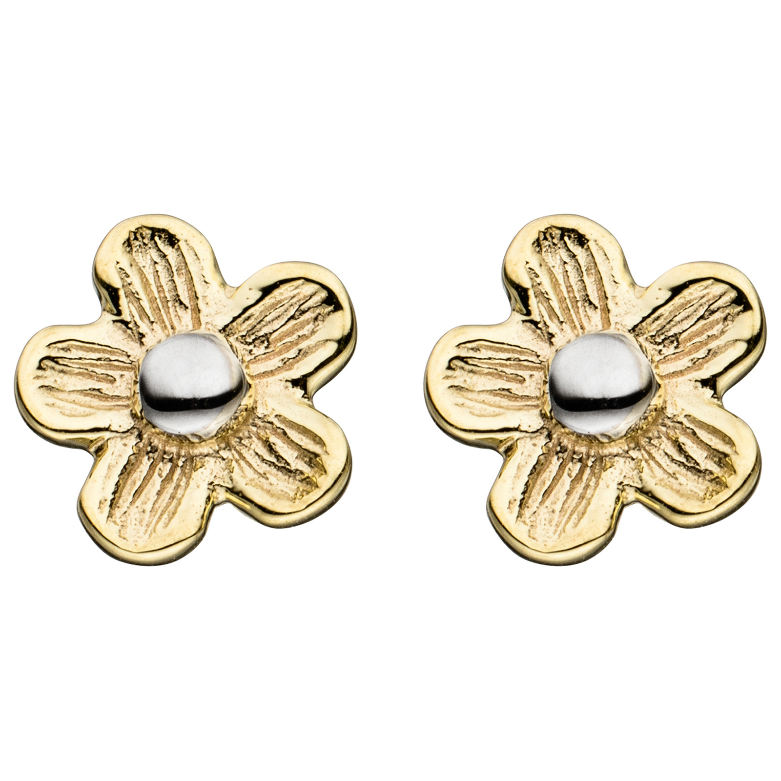 Ohrstecker Blume 333 Gold Gelbgold matt bicolor Ohrringe Goldohrstecker