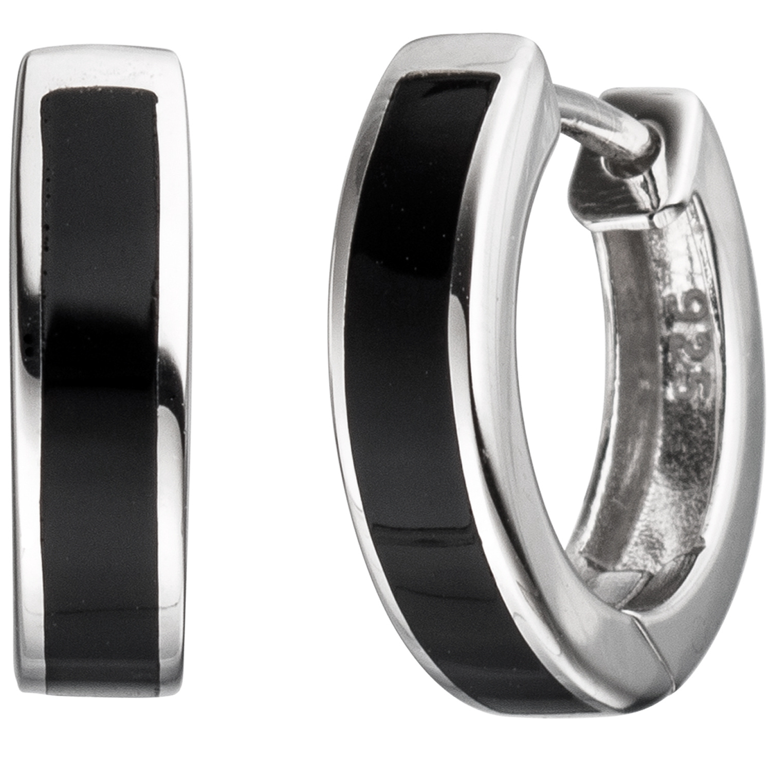Creolen rund 925 Silber mit Onyx-Imitation schwarz Ohrringe Silberohrringe
