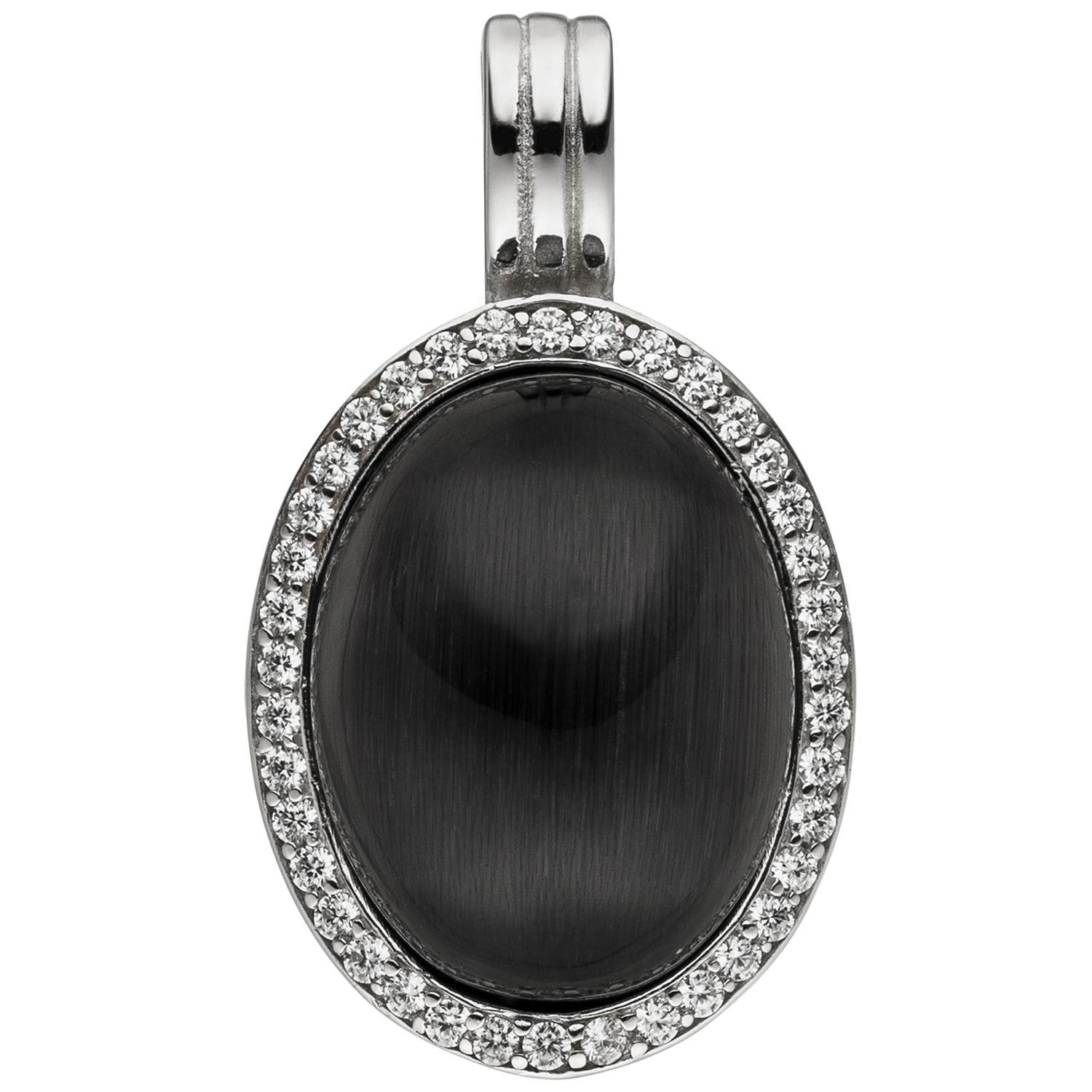 Ovaler Einhänger aus 925 Sterlingsilber, rhodiniert, mit einer Mondstein-Imitation und 38 Zirkonia, Höhe ca. 33,2 mm, Breite ca. 19,2 mm, Tiefe ca. 11,2 mm, Innenmaße der Öse ca. 5,4 mm x 4,1 mm, Gewicht ca. 9,5 g * Der Artikel ist anlaufgeschützt (rhodiniert) * Bitte beachten Sie die Maße! Auf dem Foto kann der Artikel größer wirken *