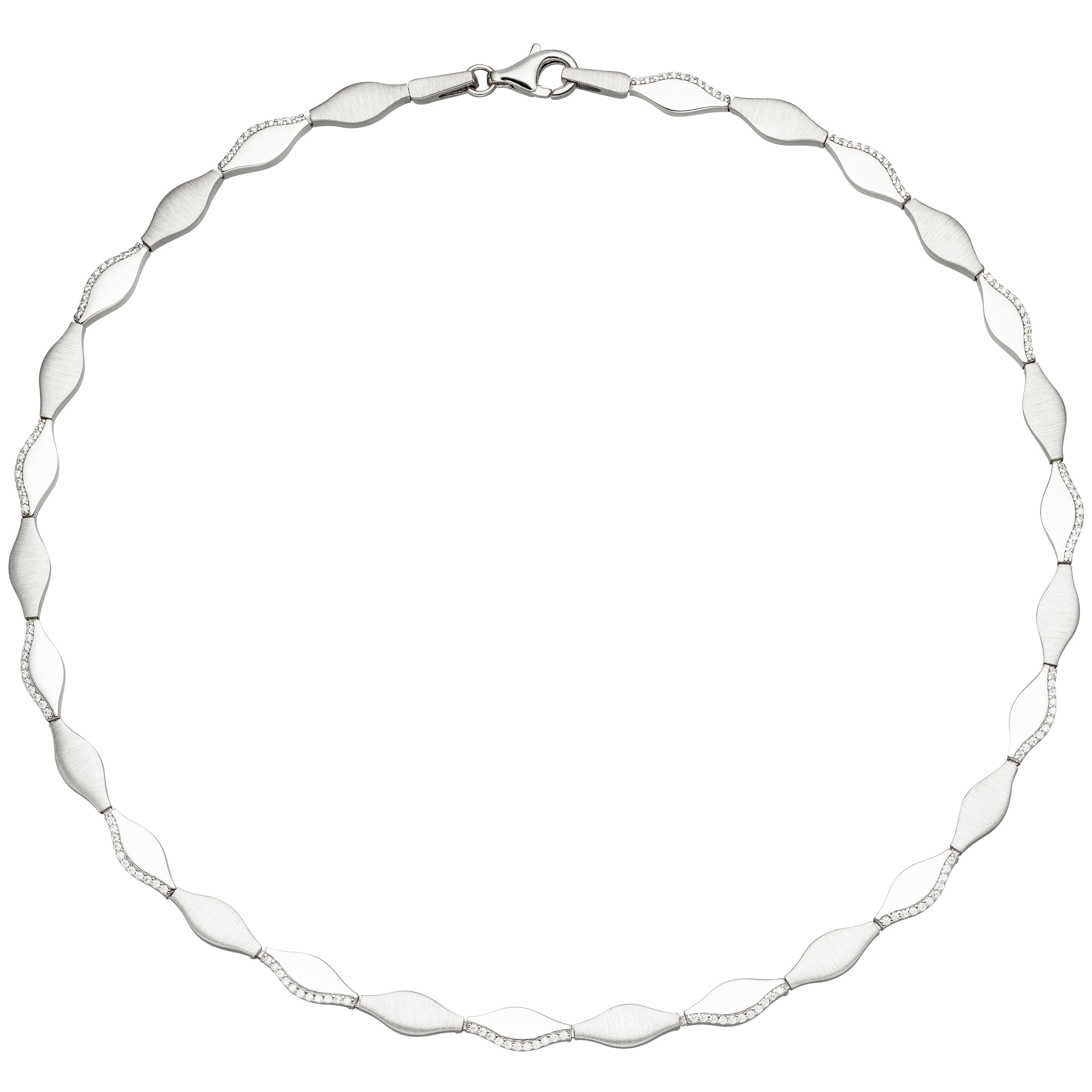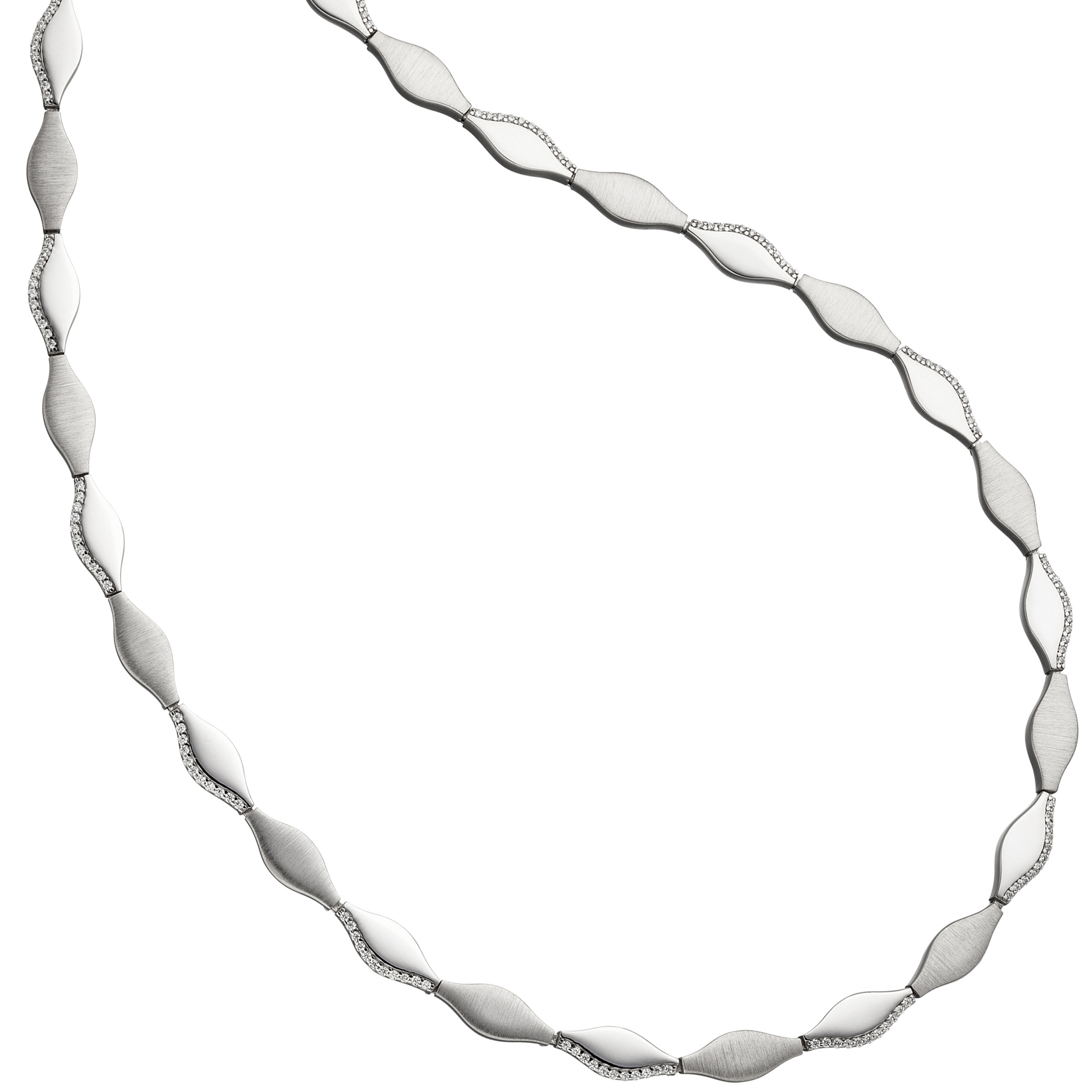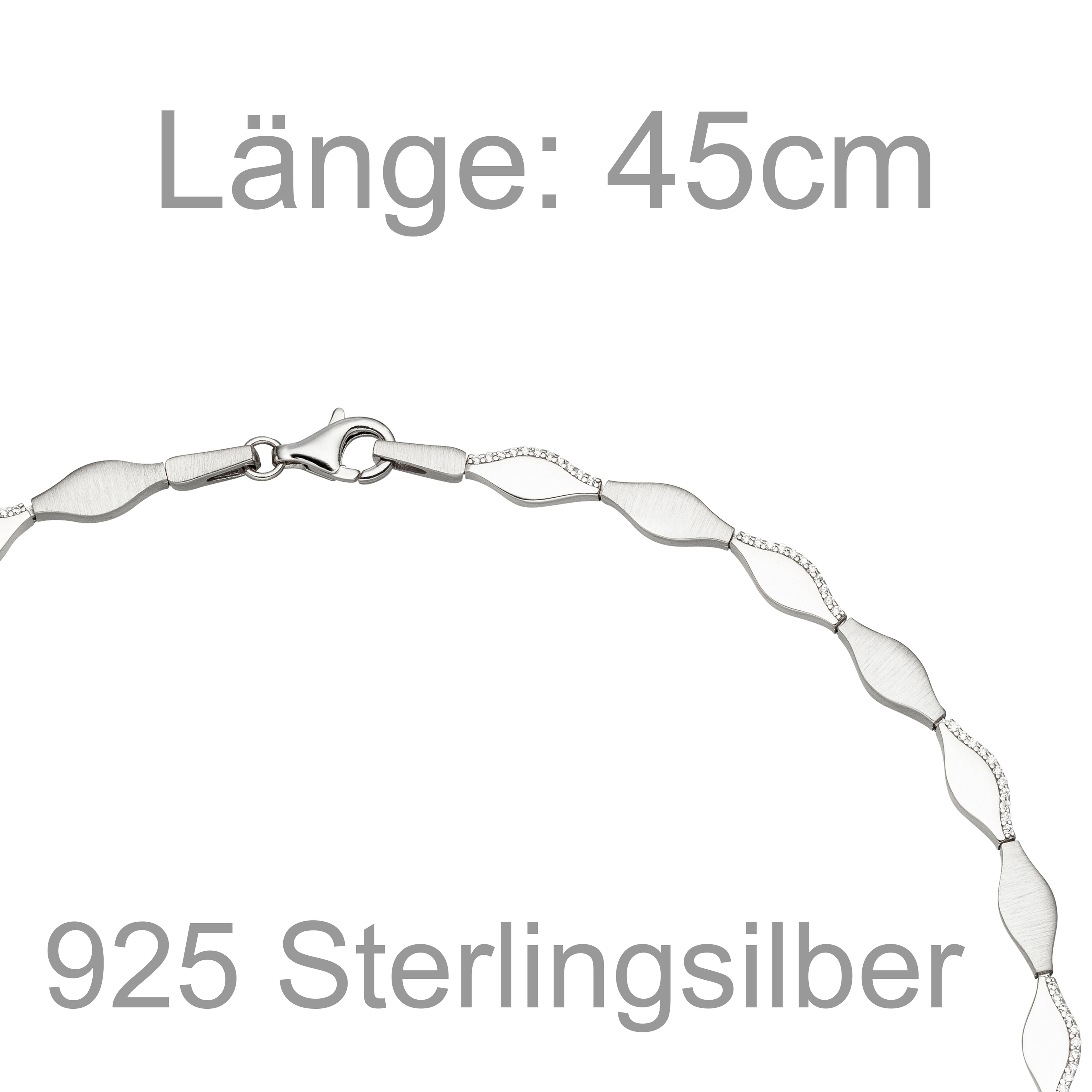 Collier Halskette 925 Silber teil matt 154 Zirkonia 45 cm Kette Silberkette