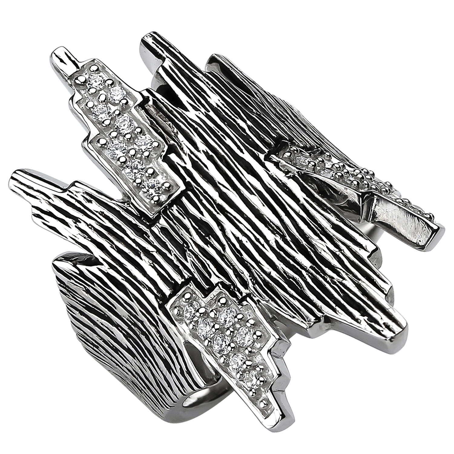 Damenring aus 925 Sterlingsilber, rhodiniert und teilgeschwärzt, mit 24 Zirkonia, Breite ca. 30,5 mm, Tiefe ca. 2,2 mm, Gewicht ca. 7,8 g * Der Artikel ist anlaufgeschützt (rhodiniert) * Bitte beachten Sie die Maße! Auf dem Foto kann der Artikel größer wirken *