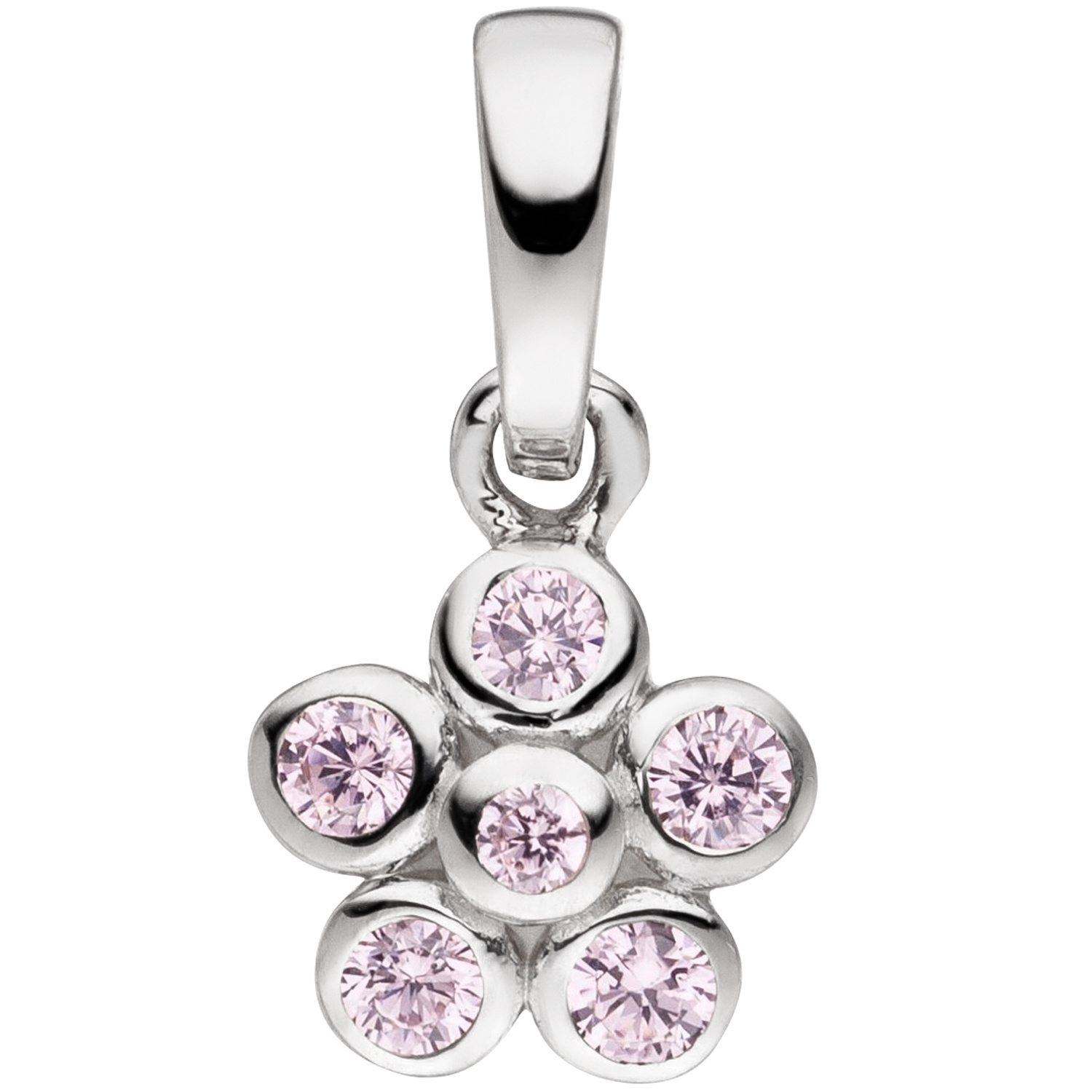 Kinder Anhänger Blume rosa 925 Sterling Silber 6 Zirkonia