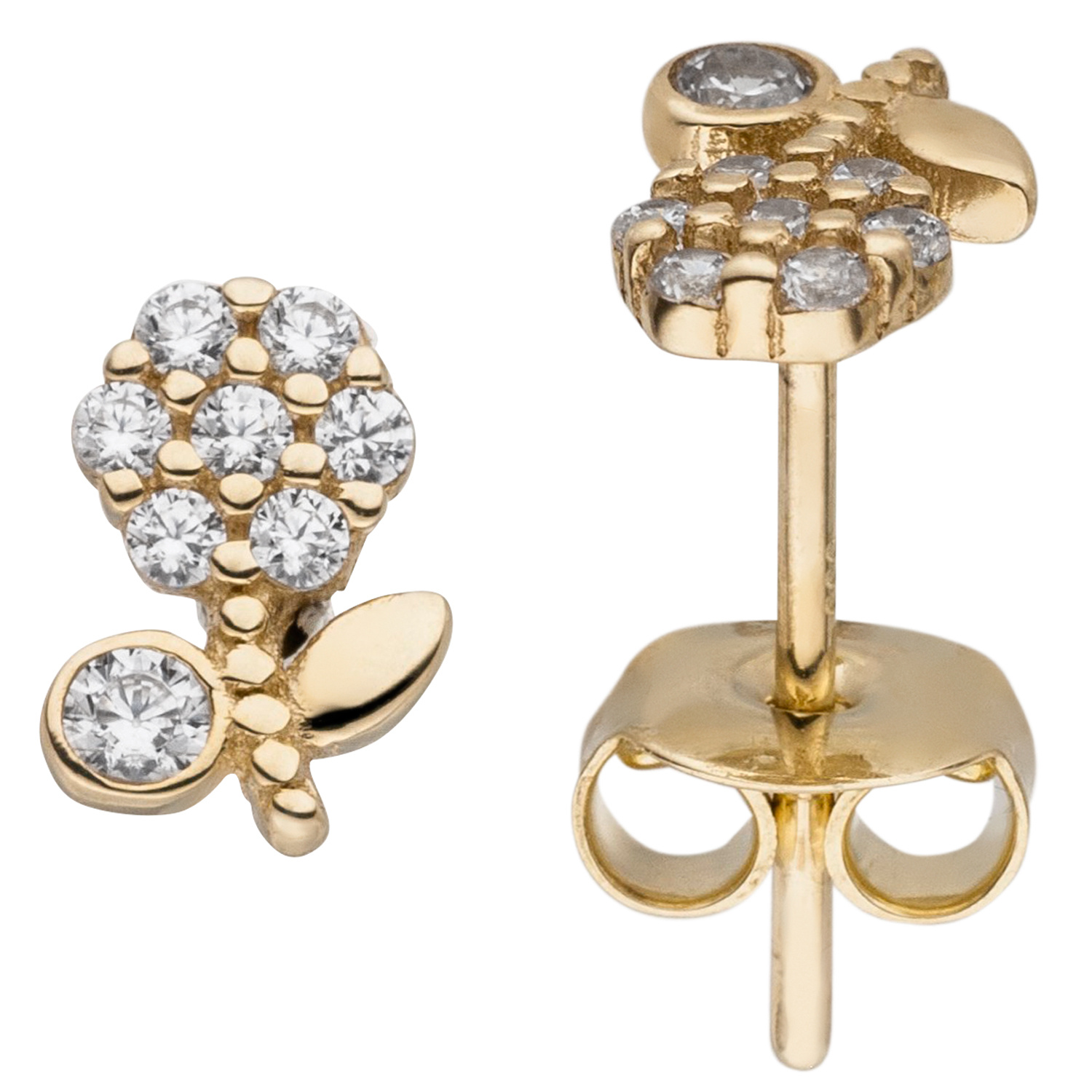 Ohrstecker Blume 333 Gold Gelbgold 16 Zirkonia