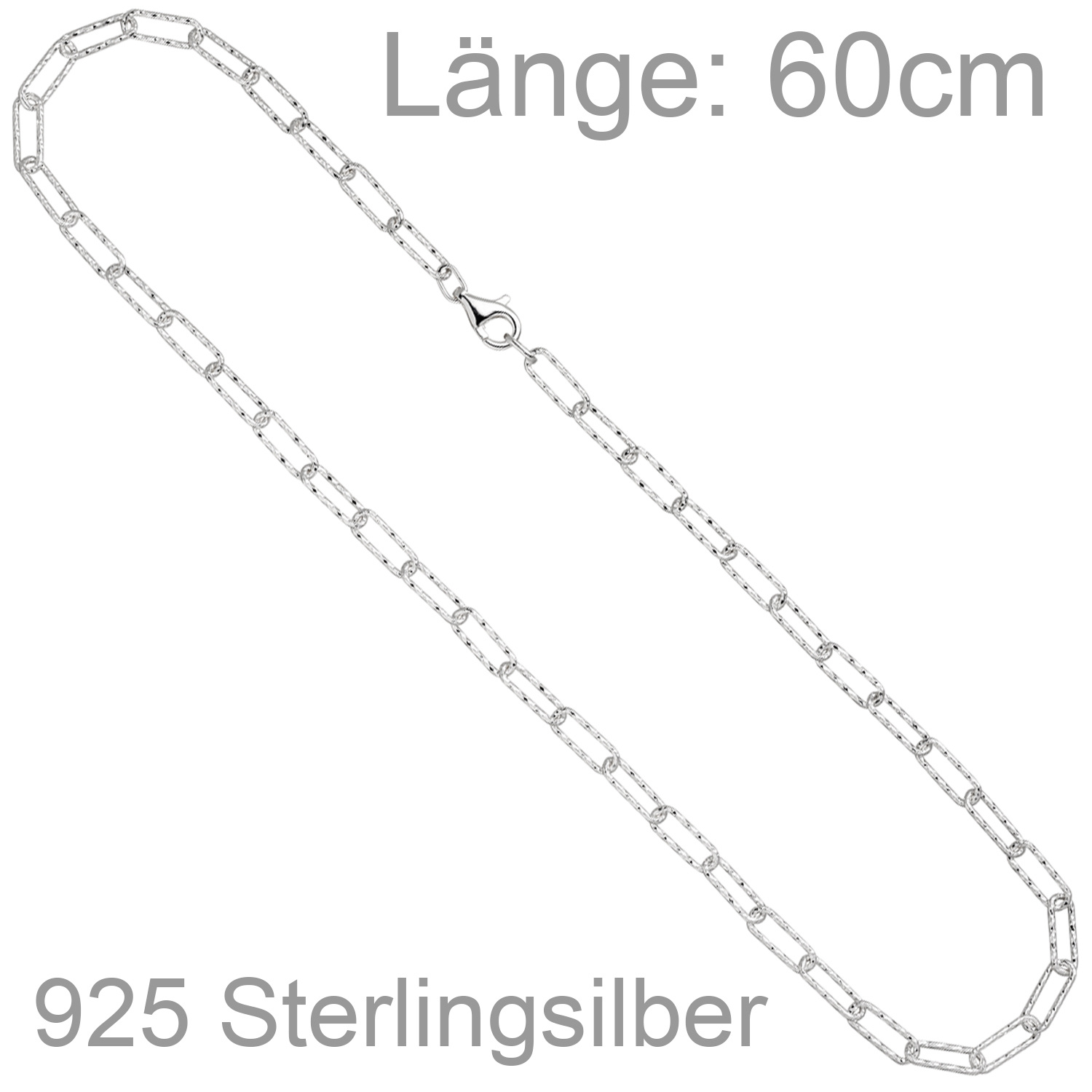 Halskette aus 925 Sterlingsilber, diamantiert, mit Karabinerverschluss, Länge ca. 60 cm, Kettenstärke ca. 5 mm x 5 mm, Gewicht ca. 14,9 g * Bitte beachten Sie die Maße! Auf dem Foto kann der Artikel größer wirken *