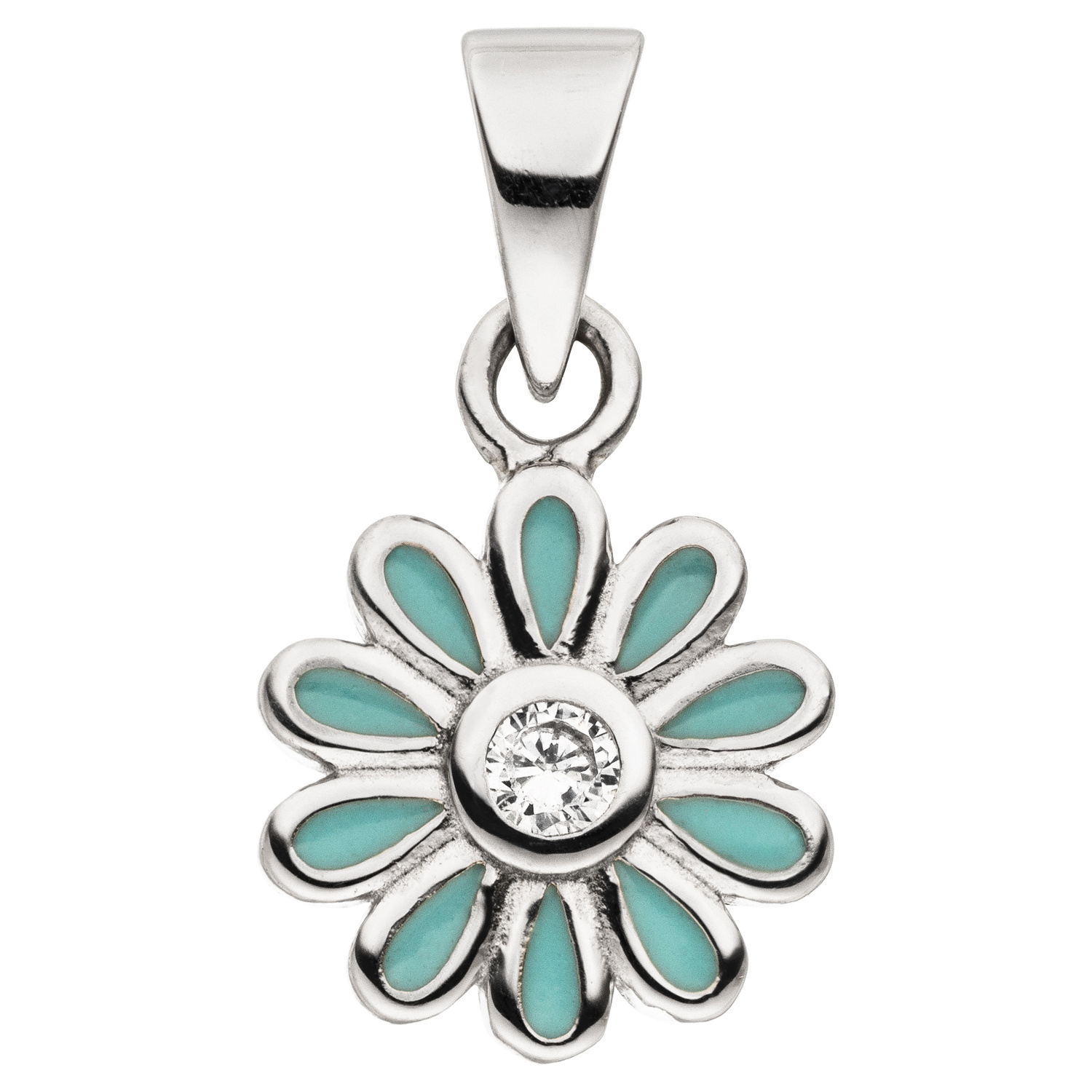 Kinder Anhänger Blume hellblau 925 Sterling Silber 1 Zirkonia